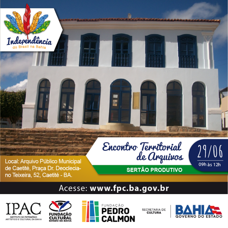 A largada acontece na Rota da Independência da Bahia, visando deixar resultados permanentes e o Arquivo Público do Estado da Bahia convocou os municípios para dialogarem sobre a construção dos planos setoriais de arquivo, para suas cidades. O primeiro Encontro Territorial de Arquivos aconteceu no último dia 16, na cidade de São Felix, reunindo representantes de arquivos dos Territórios do Recôncavo e Portal do Sertão e teve objetivo de consolidar os planos setoriais de arquivos. A próxima parada da Rota da Independência será em Caetité, onde haverá o Encontro Territoriais de Arquivos do Sertão Produtivo, amanhã (29), às 9h, na Praça municipal.