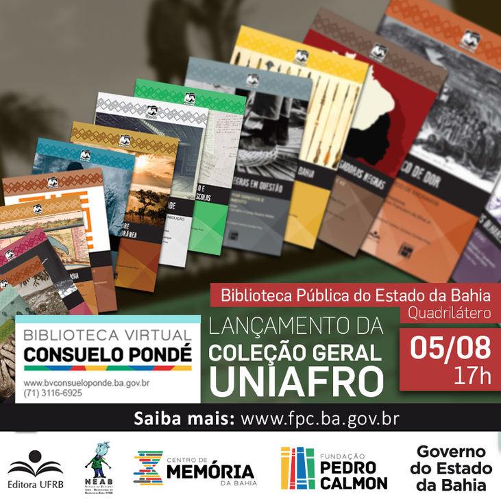 A Biblioteca Virtual Consuelo Pondé – unidade da Fundação Pedro Calmon/SecultBa, em parceria com o Núcleo de Estudos Afro-Brasileiro da Universidade Federal do Recôncavo da Bahia (NEAB-UFRB), realiza na próxima sexta-feira (05), a Biblioteca dos Barris, o lançamento da Coleção UNIAFRO – NEAB. A coleção reúne 22 obras, organizadas por pesquisadores (as) de diversos estados e países, cujo tema central baseia-se no cumprimento da Lei nº 11.645 - que torna obrigatório o ensino de História, Cultura Afro-brasileira e Indígena nas escolas de educação básica. O evento é aberto ao público, a partir das 14h.
