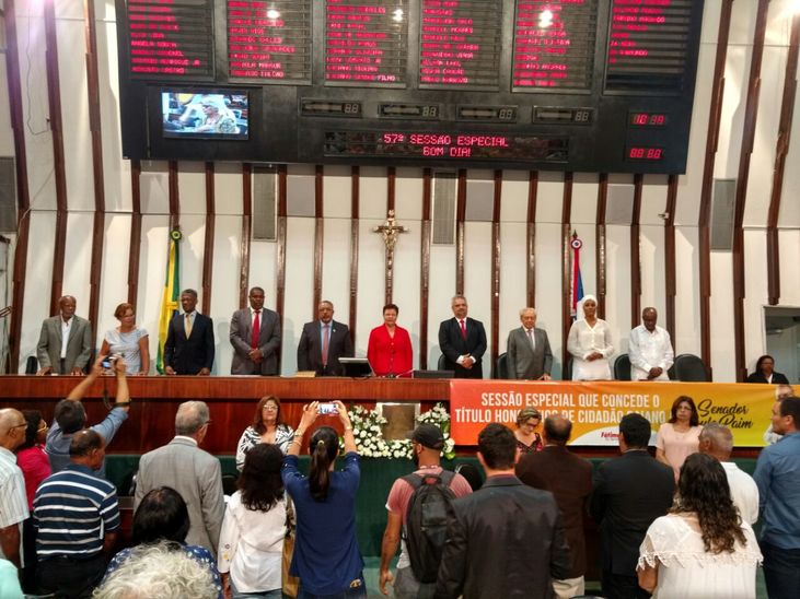 “Sim, sou negro. Meus descendentes vieram do berço da civilização, vieram da África”. Com a emoção na voz, o senador Paulo Paim (PT) assim iniciou sua fala ao receber o título de cidadão baiano, entregue pela deputada estadual Fátima Nunes, do mesmo partido. A cerimonia aconteceu na manhça desta sexta (18), na Assembleia Legislativa e reuniu parlamentares, representantes governamentais e da sociedade civil, de Salvador e de outros municípios.