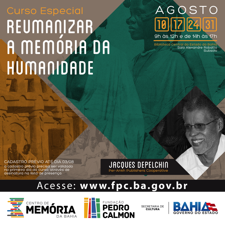 Uma das atividades basilares do Centro de Memória da Bahia é a difusão do conhecimento histórico. Em função disso, a instituição realizará do Curso Especial Re-humanizar a memória da humanidade, nas quintas-feiras de agosto (10, 17, 24 e 31). O Curso será ministrado pelo professor e historiador, Jacques Depelchin.