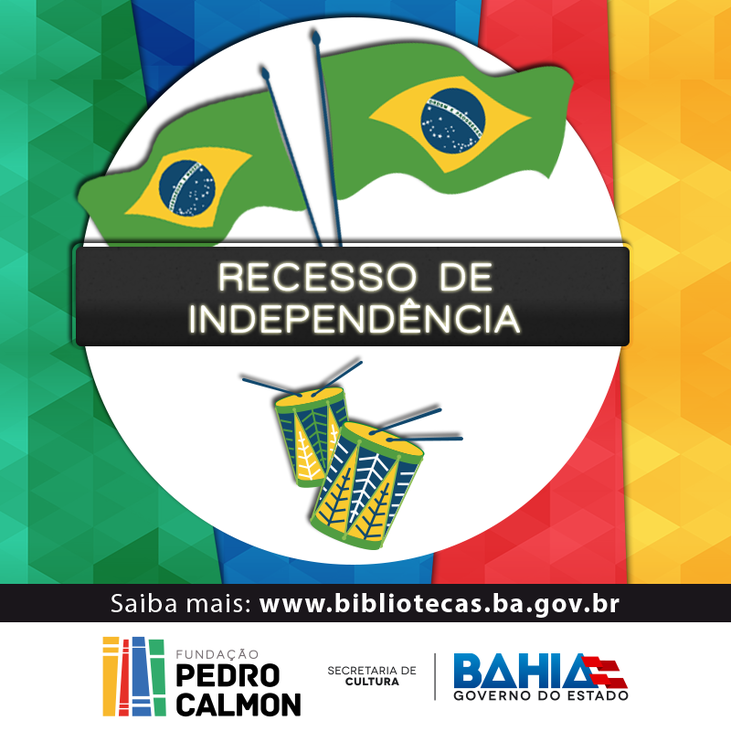 Por ocasião do feriado de 7 de setembro, informamos que as Bibliotecas Estaduais - Central (Barris), Thales Azevedo (Costa Azul), Juracy Magalhães Jr. (Itaparica e Rio Vermelho), a Biblioteca de Extensão e a Biblioteca Monteiro Lobato (Nazaré), não funcionarão nesta quinta e sexta -feira (7 e 8 de setembro).