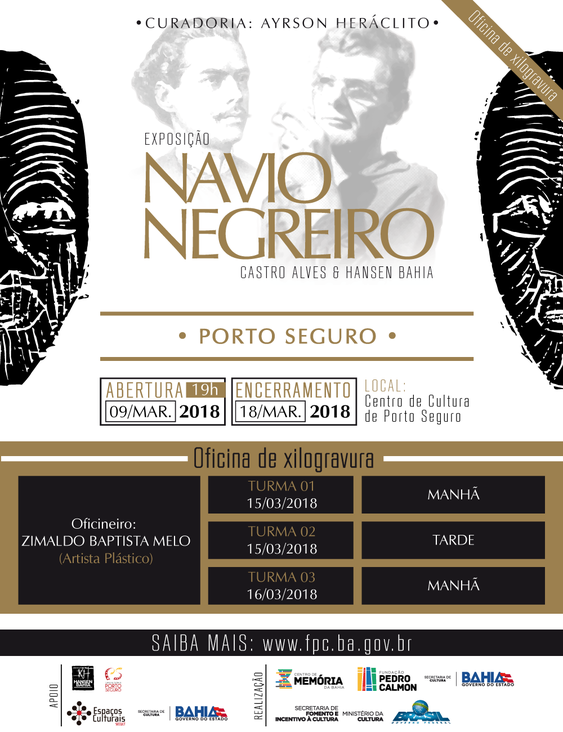 Depois de Vitória da Conquista receber a Exposição Itinerante Navio Negreiro, chegou a vez da população de Porto Seguro conhecer as obras do artista Hansen Bahia, que foram inspiradas no poema O Navio Negreiro, de Castro Alves. A exposição ficará aberta ao público no Centro de Cultura de Porto Seguro, Rua 15 de Novembro, Pacatá, de 9 a 18 de março.