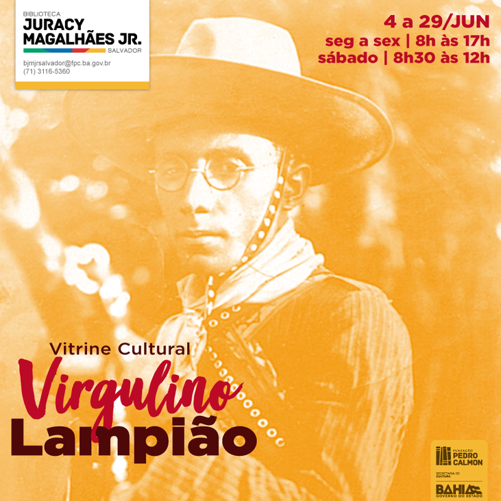 Serviço: O que: Vitrine Cultural: Virgulino Lampião Quando: 04/06 à 29/06 de segunda a sexta 8h às 17h e aos sábados 8h30 às 12h Onde: Biblioteca Juracy Magalhães Jr