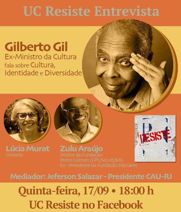 Promovida pela Universidade da Cidadania, da Universidade Federal do Rio de Janeiro (UFRJ), o UC Resiste Entrevista convidou Gilberto Gil com a proposta de promover o diálogo e a troca entre o mundo universitário e a carreira profissional do artista. A conversa acontece nesta quinta-feira (17), às 18h, na página do Facebook da UC Resiste e terá mediação de Jeferson Salazar.