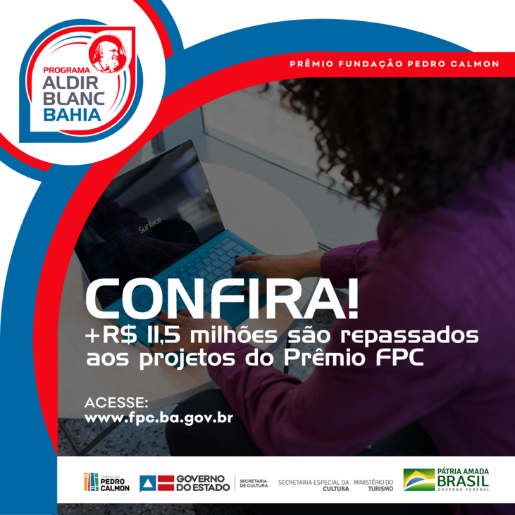 Alcançando 23 dos 27 Territórios de Identidade do Estado da Bahia, 346 propostas habilitadas no Prêmio Fundação Pedro Calmon, dentro do Programa Aldir Blanc Bahia, da Secretaria de Cultura (SecultBA), já receberam os valores da premiação. Cumprindo o Plano de Aplicação da Secretaria Especial de Cultura, do Ministério do Turismo (MTur) do governo Federal, a FPC coordenou o edital de premiação que distribuiu investimentos de mais de R$ 11,5 milhões.