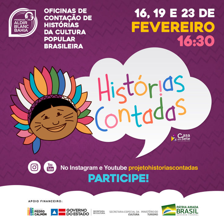 O Projeto tem apoio financeiro do Estado da Bahia através da Secretaria de Cultura e da Fundação Pedro Calmon (Programa Aldir Blanc Bahia) via Lei Aldir Blanc, direcionada pela Secretaria Especial da Cultura do Ministério do Turismo, Governo Federal e será realizado no formato virtual, as oficinas começarão no dia 16 de fevereiro, nas terças e sextas às 16h30.