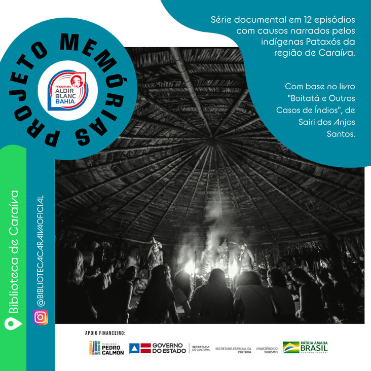 A Biblioteca Comunitária de Caraíva apresentará um serie documental em 12 episódios com “causos” narrados por moradores nativos e indígenas Pataxó da região de Caraíva no extremo sul da Bahia, com base no livro “Boitatá e outros caso de índios” do autor Sairi dos Anjos Santos.