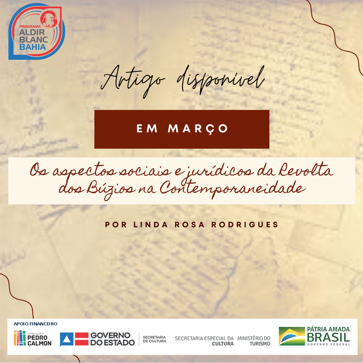 A pesquisa intitulada “Os Aspectos Sociais e Jurídicos da Revolta dos Búzios na Contemporaneidade”, da bacharel em direito, Linda Rosa Rodrigues, tem como objeto de análise os aspectos sociais e jurídicos do movimento social popular de 1798 a favor da luta contra o racismo até a contemporaneidade.