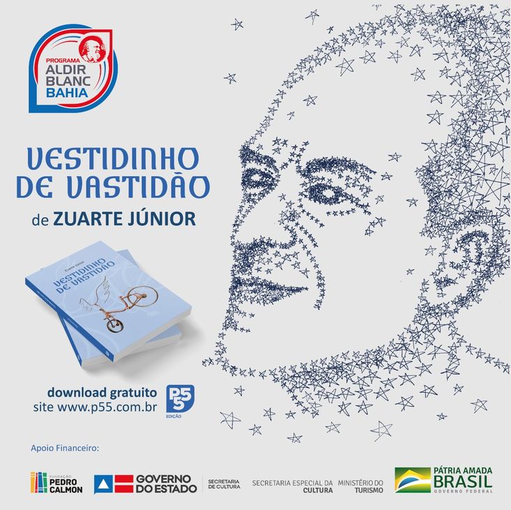 Mais conhecido por sua atuação como cenógrafo e figurinista de espetáculos de teatro da cidade, o artista plástico graduado pela UFBA, poeta e compositor, Zuarte Jr., já tem um livro publicado no seu currículo – Em Busca do Sol de Si, e já participou de algumas coletâneas. Vestidinho de Vastidão é sua primeira incursão pelo universo digital, ferramenta apropriada para o momento, e reúne poemas inéditos que falam de tempo, memórias, identidade, amor e transcendência.