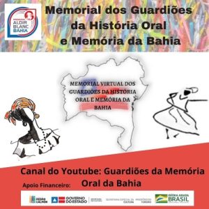 O projeto “Memorial Virtual dos Guardiões da História Oral da Bahia” valorizará as narrativas e cantigas das tradições populares com idosos, produtores de cultura popular e mestres do saber popular, cada um, através de pequenos vídeos narrados mostrarão fotos e contará suas experiências na valorização da cultura popular de todo estado da Bahia.