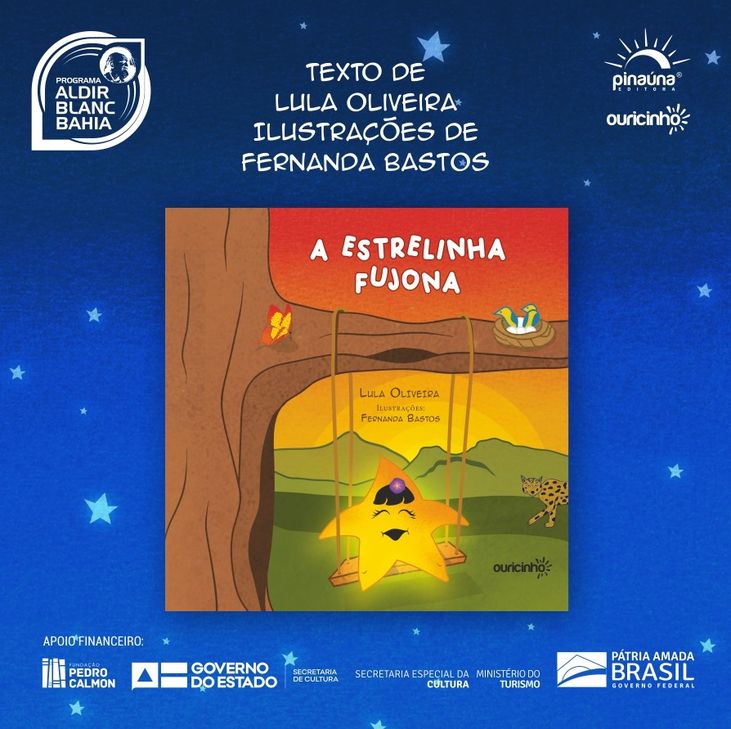 Lula Oliveira e Fernanda Bastos, cineastas baianos, desenvolvem livro infantojuvenil “A Estrelinha Fujona”, com lançamento em abril, na estreia do selo Ouricinho, da Pinaúna Editora! A publicação será realizada nas versões impressas e e-book, com recursos de acessibilidade.
