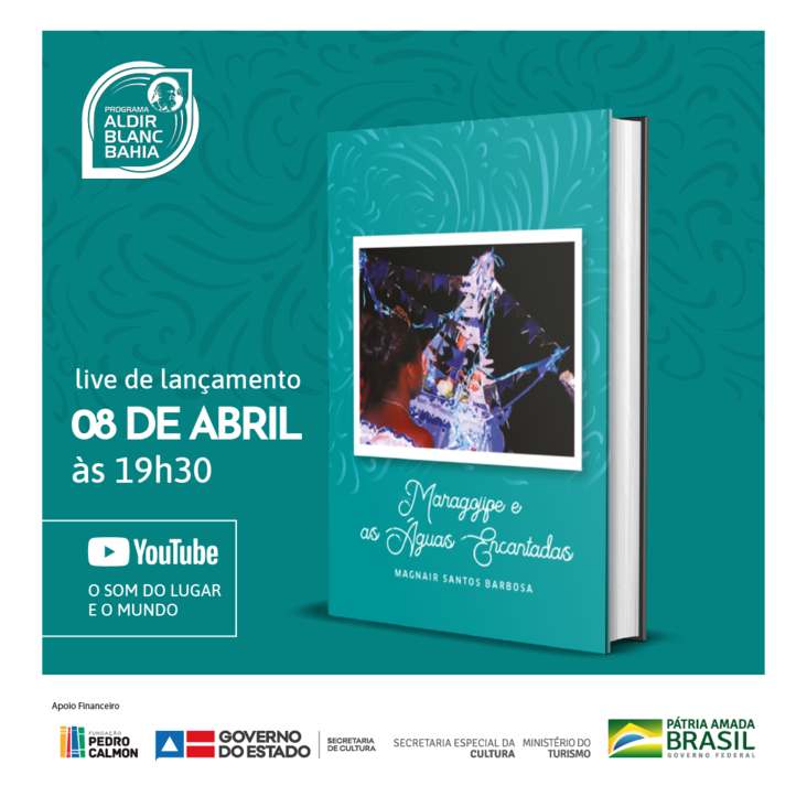 Dia 08 de abril acontece o lançamento do livro “Maragojipe e as Águas Encantadas”, de Magnair Santos Barbosa, historiadora, pedagoga, especialista em História e Cultura Baiana. O bate-papo será virtual e vai contar também com a participação de Aninha (Adeilza, do Quilombo), representante da Barquinha do quilombo Enseada do Paraguaçu.