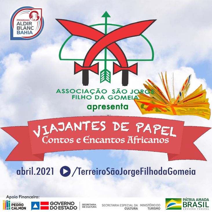 O projeto “Viajantes de Papel - contos e encontros africanos” tem o objetivo de contar histórias para crianças em formato audiovisual, a partir de contos e mitos africanos, utilizando os livros do acervo da Biblioteca Comunitária do Terreiro São Jorge Filho da Goméia, localizada no município de Lauro de Freitas.
