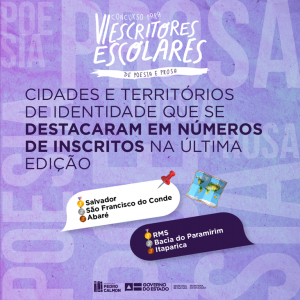 Voltado para estudantes matriculados regularmente em escolas públicas e privadas, o VI Concurso pretende alcançar, novamente, os 27 territórios de identidade do estado da Bahia. Na última edição, em 2019, o Escritores Escolares envolveu todos os territórios, com mais de 1.2 mil estudantes inscritos. Foram 85 municípios participantes. Destaque para Salvador com 500 listados, São Francisco do Conde com 181, Abaré 54, Ilha de Itaparica e Ibipitanga com 48 e Lapão com 42 inscritos.