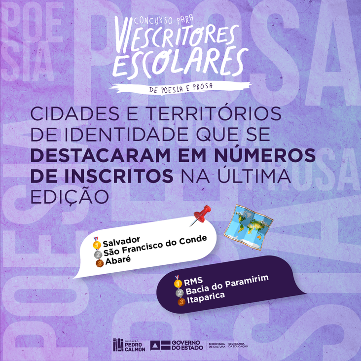 E para alcançar mais estudantes de todo o estado, esta sexta edição conta com a parceria da Secretaria de Educação (SEC). Nesta edição, o Concurso pode ser curricularizado, sendo convalidado como Atividades Curriculares Complementares (ACC’s), dentro do Continuum Pedagógico 2020/2021, instituído na rede estadual de educação da Bahia. Passando a contar com o envolvimento direto das escolas e professores em sua realização. Através das unidades escolares, o projeto tem sua abrangência ampliada para todo Estado da Bahia, democratizando o acesso e gerando mais oportunidades para os jovens dos 27 territórios de identidade do Estado.
