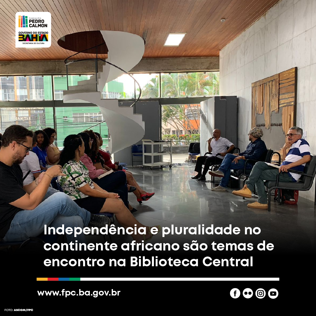 À véspera da celebração do Dia da África (25 de maio), o Sistema Estadual de Bibliotecas Públicas (SEBP), gerido pela Fundação Pedro Calmon (FPC/SecultBa), realizou na Biblioteca Central do Estado da Bahia (BCEB), um encontro em referência a independência do continente africano. O evento aconteceu na tarde de hoje (24), e contou com a mediação do professor Edmilson de Sena Morais, que dialogou com o cientista social Kleber Rosa e o historiador Juvenal de Carvalho.