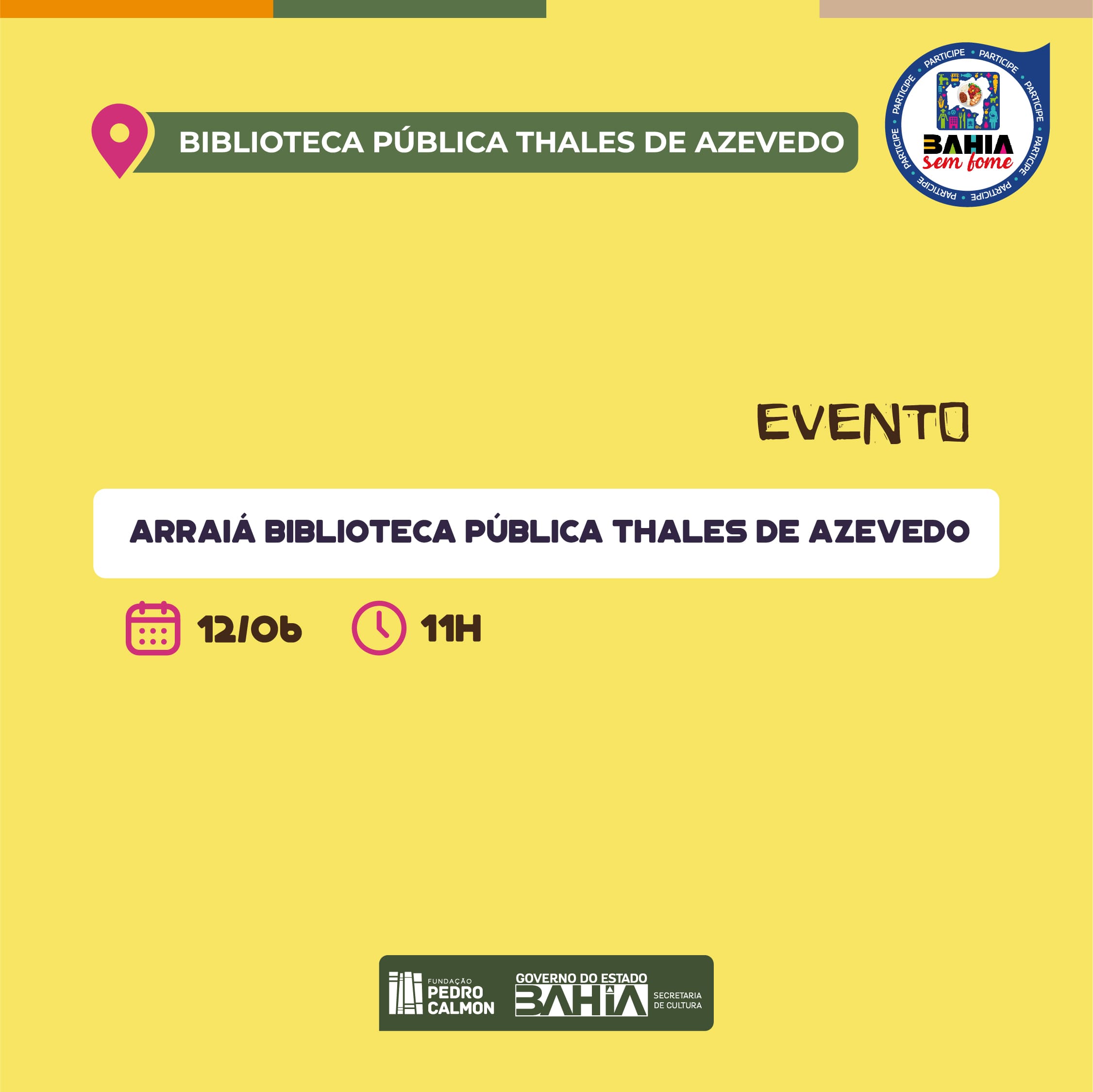 Nesta semana, a Biblioteca Pública Thales de Azevedo (BPTA), realiza no dia 12 de junho, às 11h, no auditório seus festejos juninos para o público Infantil.