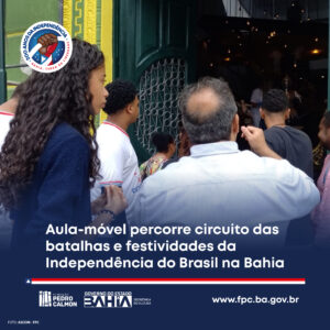 O projeto que pretende visitar 16 municípios, chegou a Salvador no formato  de aulas móveis para estudantes e inscritos em chamada pública. Para Vladimir Pinheiro, Diretor Geral da Fundação Pedro Calmon (FPC/SecultBa) , as ações buscam fortalecer a identidade dos baianos. “Visitaremos sítios e trechos importantes para a memória da Bahia. Em Salvador, percorremos de Pirajá, passando por Lapinha, até o Campo Grande. Nosso ponto de partida é o Arquivo Público do Estado da Bahia (APEB), que detém documentos de referência para a consolidação da Independência”, afirmou.