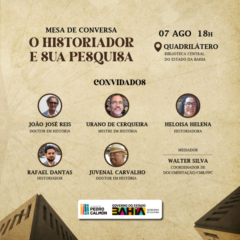 Obras raras, periódicos e documentos baianos são os acervos mais procurados por historiadores no curso de sua formação, dos quais muitos se tornam obras que lançam novas narrativas históricas e ganham destaques no cenário nacional das pesquisas. Com esse foco, a Secretaria do Estado da Bahia (SecultBa), por meio da Fundação Pedro Calmon (FPC), realiza nesta segunda-feira (7), às 18h, a mesa “O historiador e sua pesquisa”, no quadrilátero da Biblioteca Central do Estado da Bahia (BCEB), que traz o premiado João José Reis.
