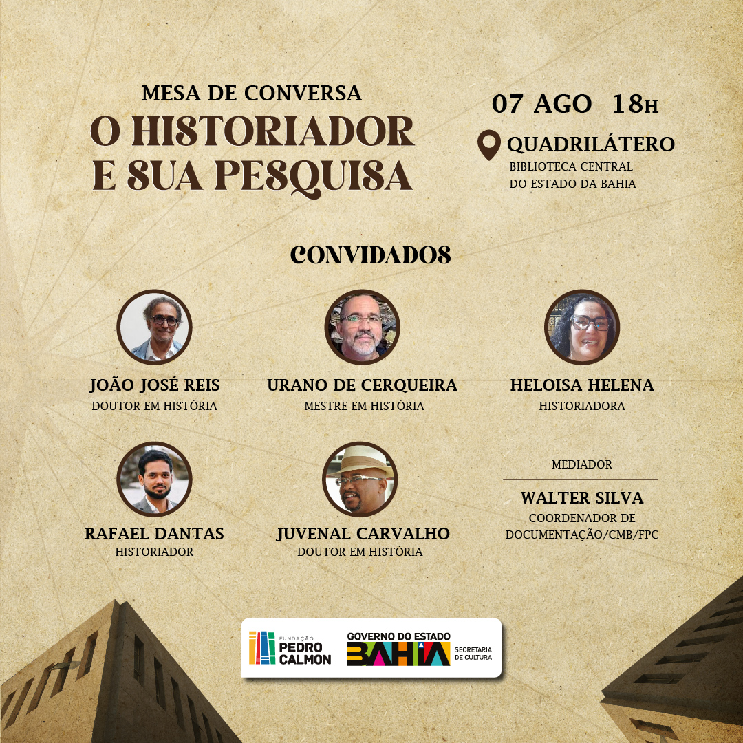 Além de João José Reis, o tema será debatido com a doutora em História, Heloisa Helena Monteiro; Juvenal de Carvalho, professor de história da Universidade Federal da Bahia (UFRB); e os historiadores Rafael Dantas e Urano Andrade.