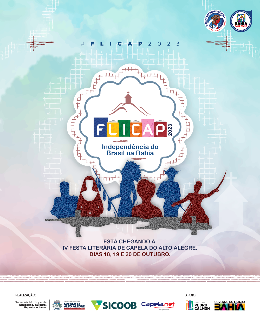 Entre os dias 18 a 20 de outubro, acontece a IV Feira Literária de Capela do Alto Alegre - FLICAP 2023. O evento celebra o Bicentenário da Independência com uma programação diversa.