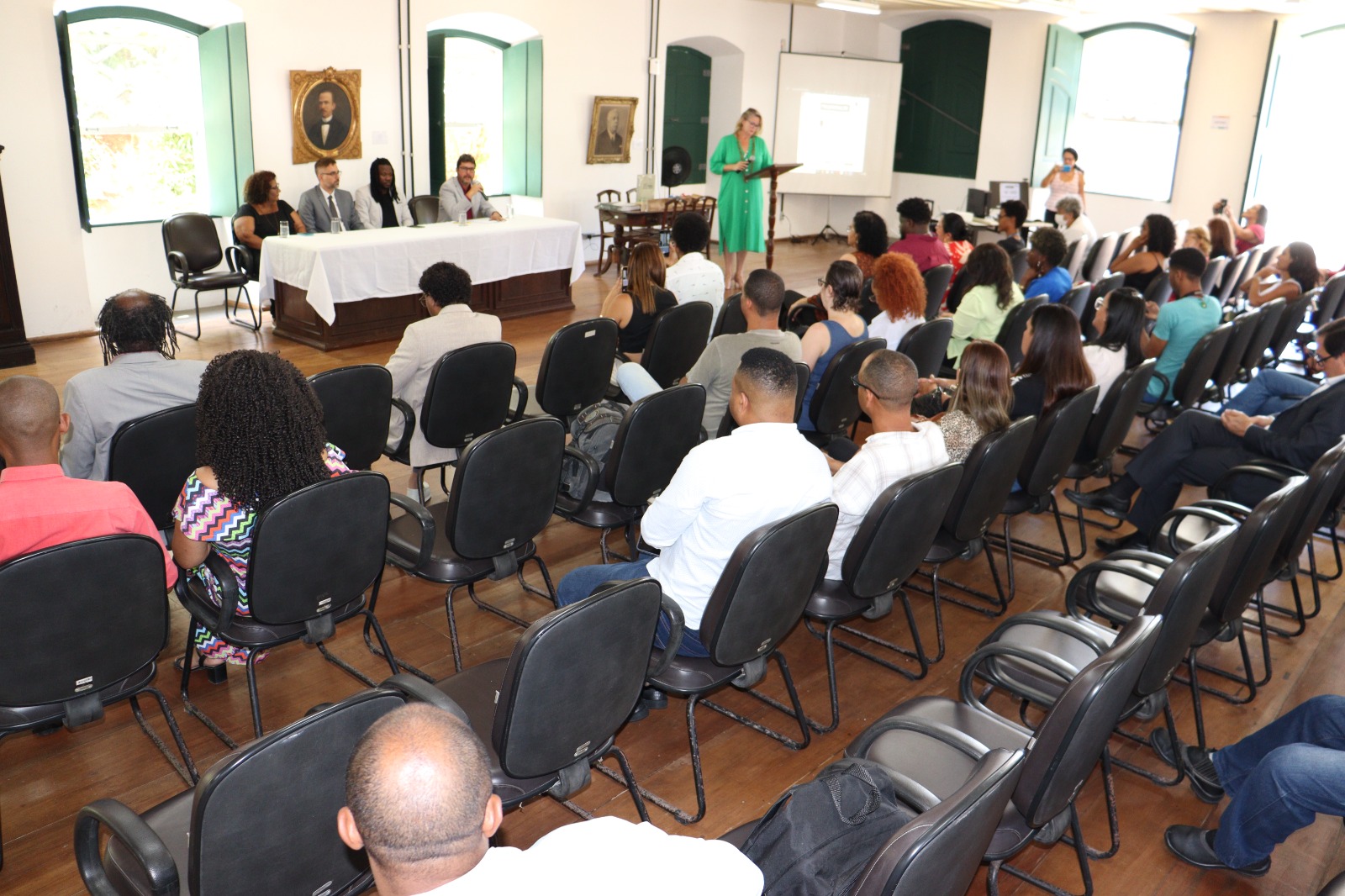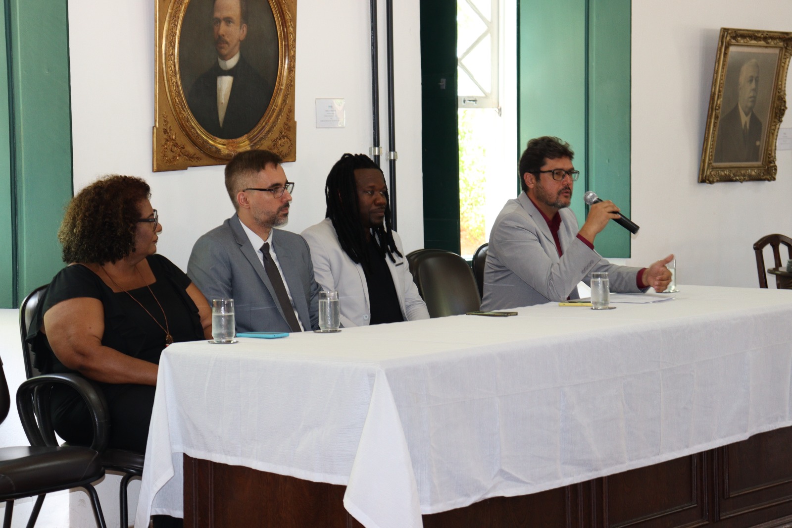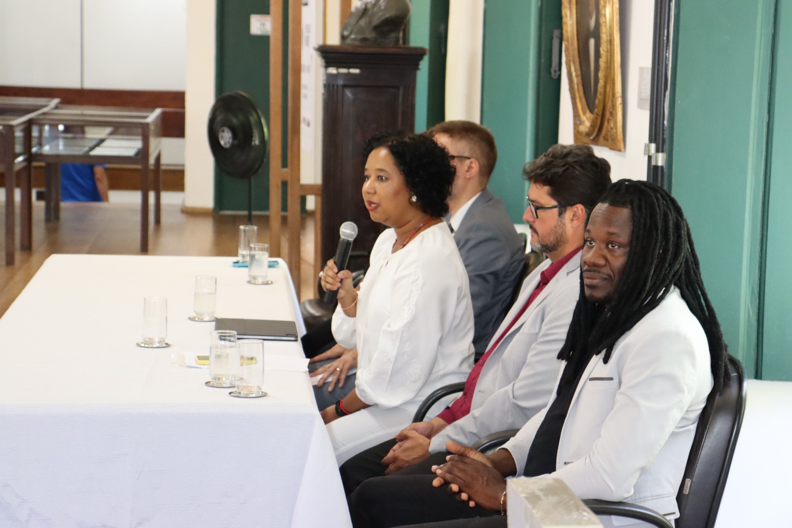 A abertura do evento também contou com as presenças de Gilian Leandro, diretor do Instituto de Ciência da UFBA (ICI/UFBA) e da vice-presidente da Associação dos Arquivistas da Bahia (AABA), Leide Mota.