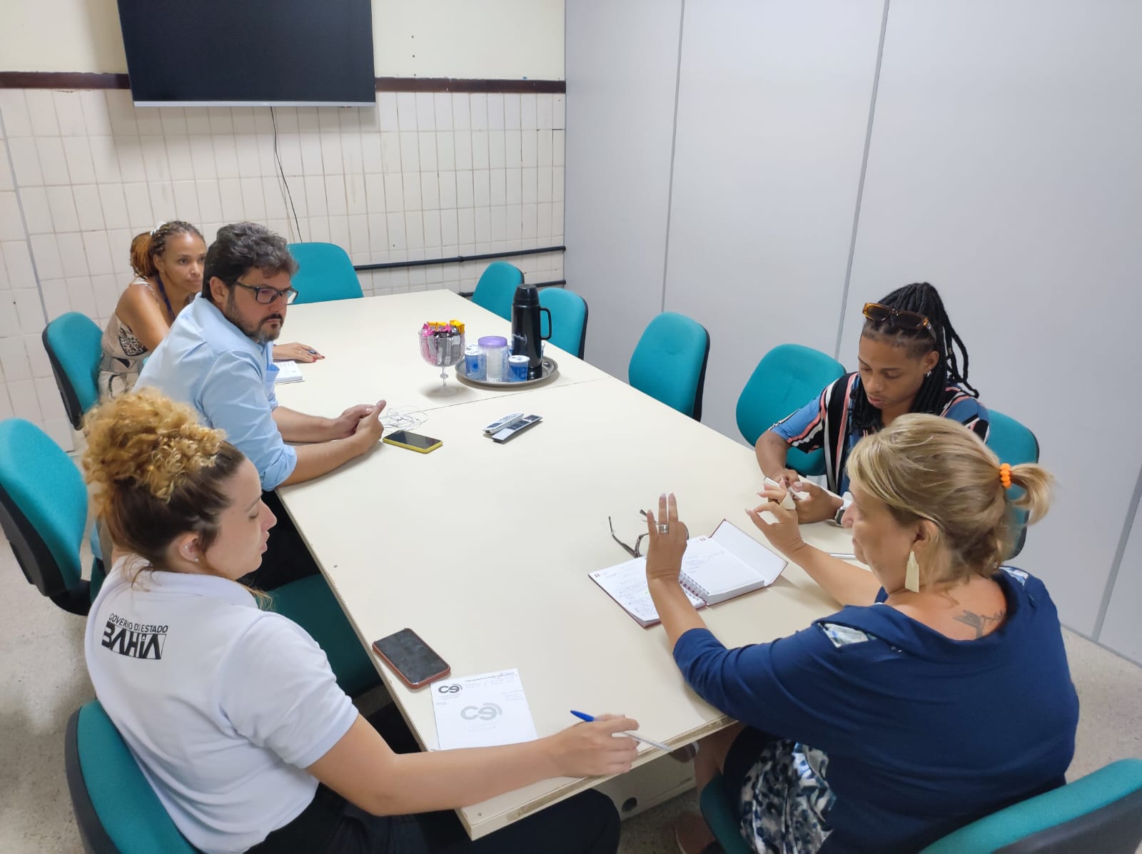 Também estiveram presentes na reunião, Bruna Carapiá, assessora estudantil do Bolsa Presença da Secretaria de Educação da Bahia, e Felipe Oliveira, assessor técnico do NTE 26.