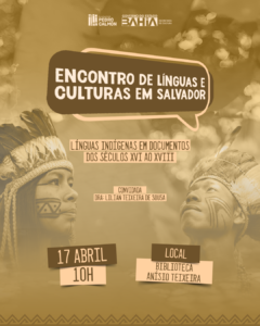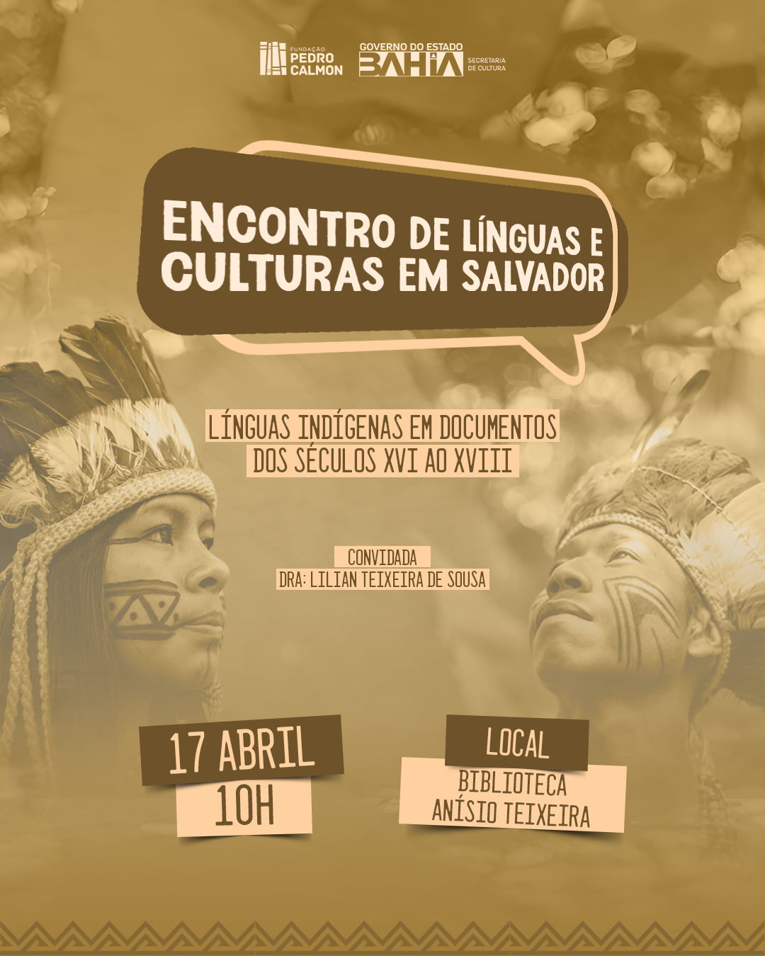 O Curso ‘Encontro de Línguas e Culturas em Salvador’, que acontecerá entre os meses de março a dezembro, uma vez por mês, na Biblioteca Anísio Teixeira (BAT), equipamento da Fundação Pedro Calmon (FPC/SecultBa), promove mais um encontro nesta quarta-feira (17), às 10h. Dessa vez, sobre Línguas Indígenas em documentos dos séculos XVI ao XVIII, ministrado pela Professora Doutora Lilian Teixeira.