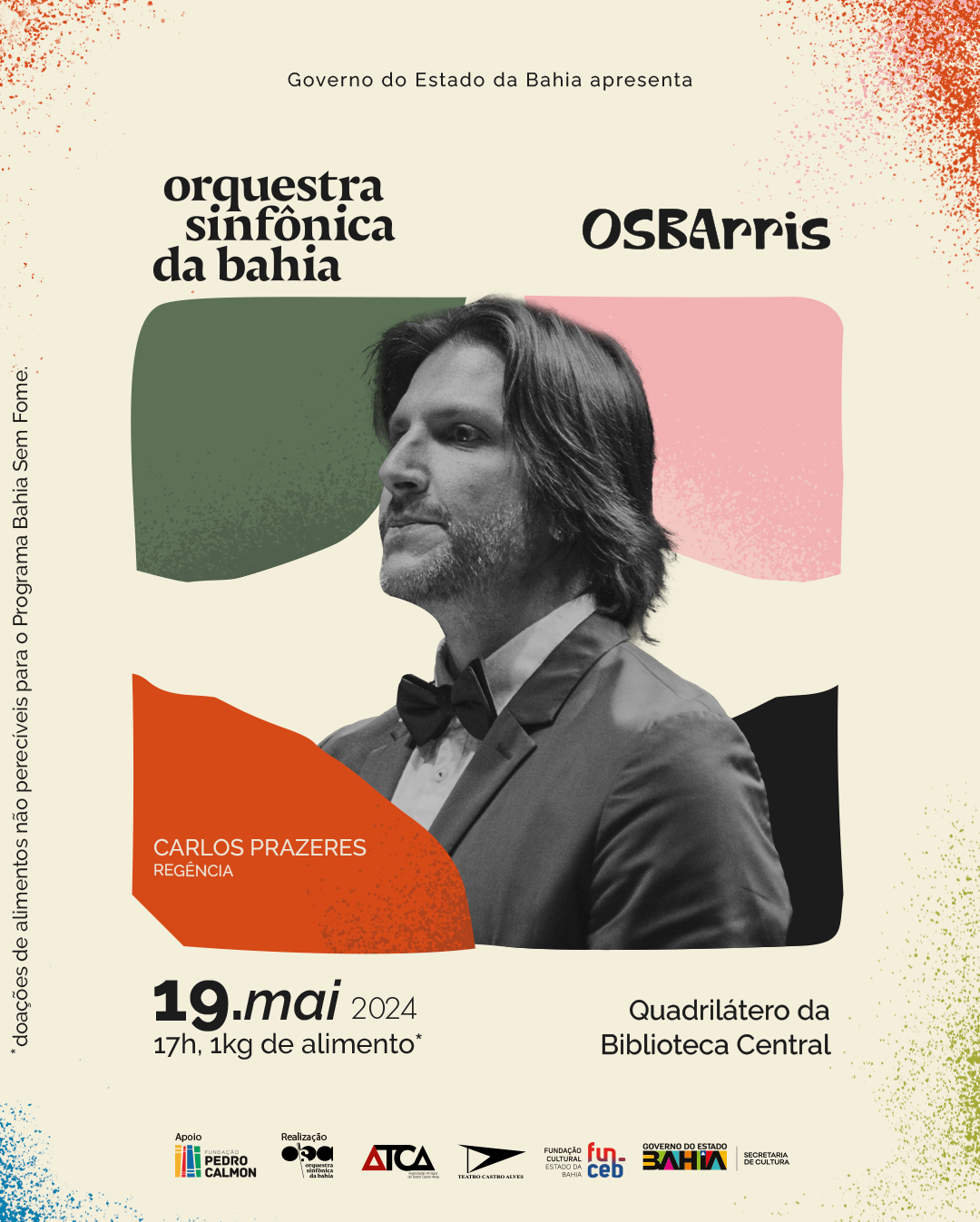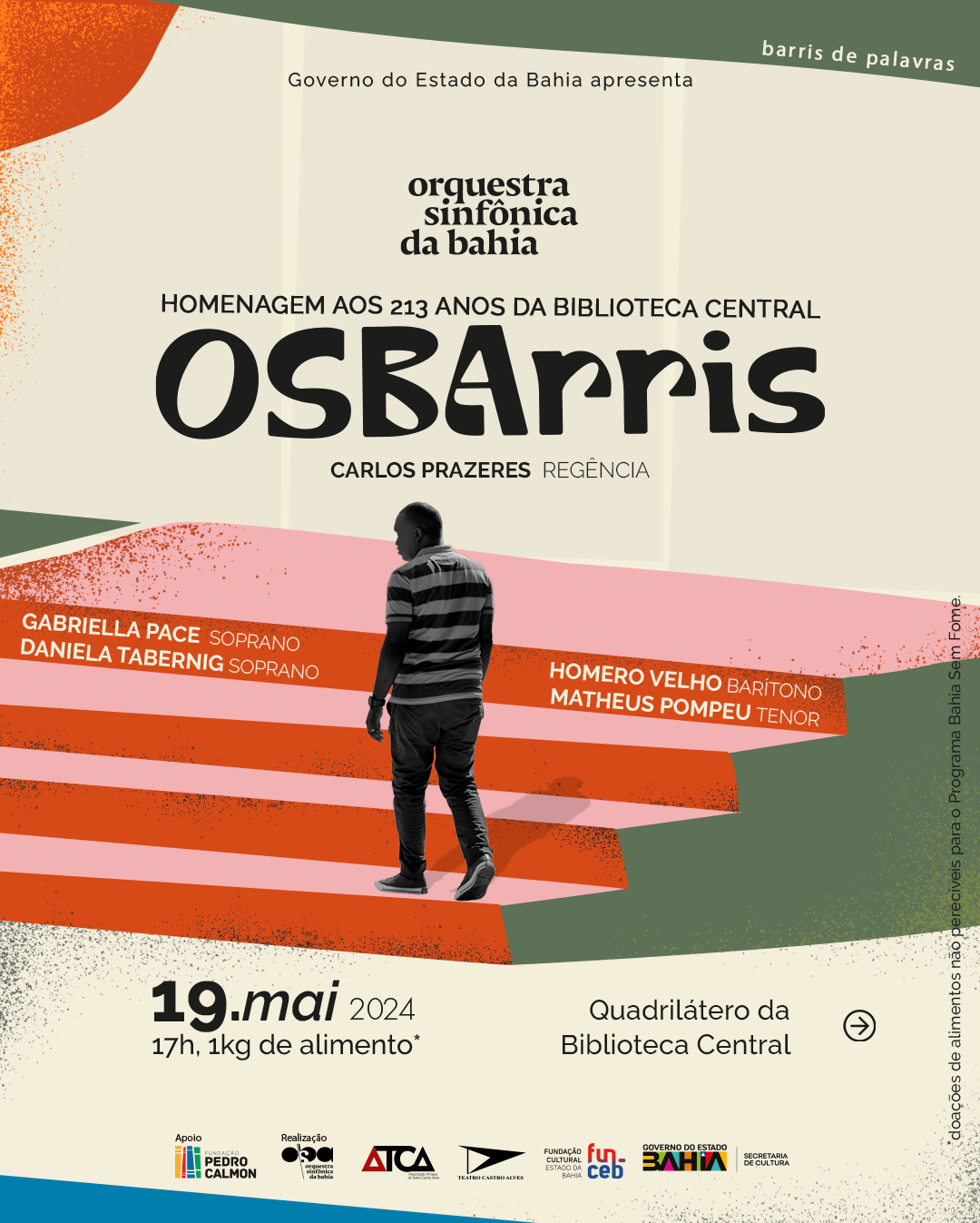 A Orquestra Sinfônica da Bahia realiza neste domingo, dia 19 de maio, às 17h, a terceira edição do OSBArris, projeto em que a OSBA ocupa com música sinfônica o Quadrilátero da Biblioteca Central do Estado da Bahia.Esta apresentação encerra a semana de celebração dos 213 anos de fundação deste importante equipamento cultural baiano, localizado no bairro dos Barris. Fundada em 13 de maio de 1811, esta é a primeira biblioteca pública do Brasil e da América Latina. A entrada para o evento será feita por meio da doação de um quilo de alimento não perecível ao Bahia Sem Fome.