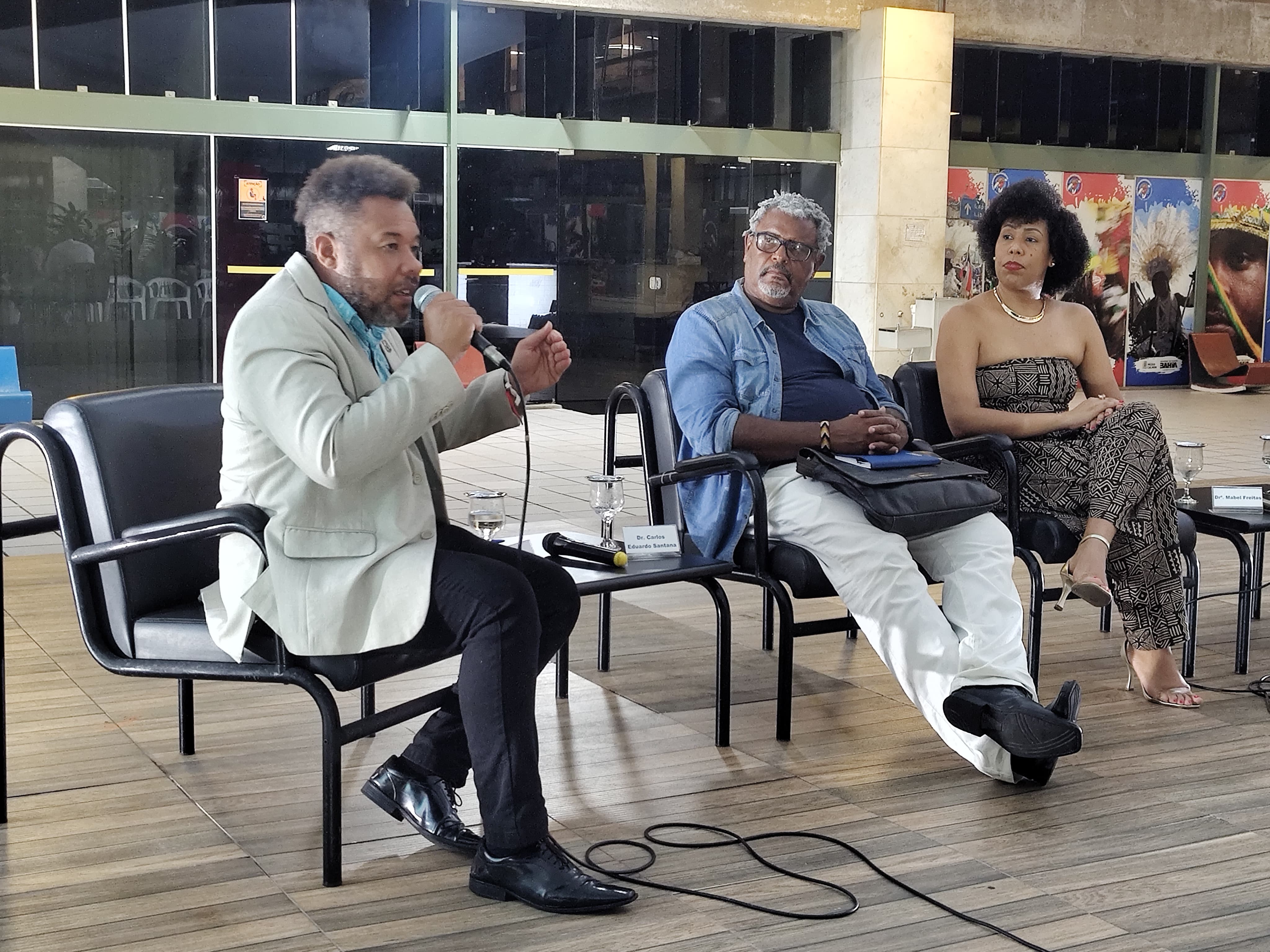 Nesta terça-feira (14), a Biblioteca Central do Estado da Bahia, unidade da Fundação Pedro Calmon, recebeu a Dra. Mabel Freitas, o Dr. Carlos Eduardo e o Dr. Misael França, para a roda de conversa: Afrorreflexões sobre grilhões escravagistas contemporâneos. A atividade teve o objetivo de abordar as dificuldades sofridas pela população negra após a Lei Áurea, sancionada em 13 de maio de 1888. Ao longo desses anos, a luta do movimento negro de combate ao racismo, possibilitou muitos avanços, mas ainda há muito por se fazer. Esses, e outros temas, foram abordados na roda que teve a mediação do Chefe de Gabinete da FPC, Caruso Costa.