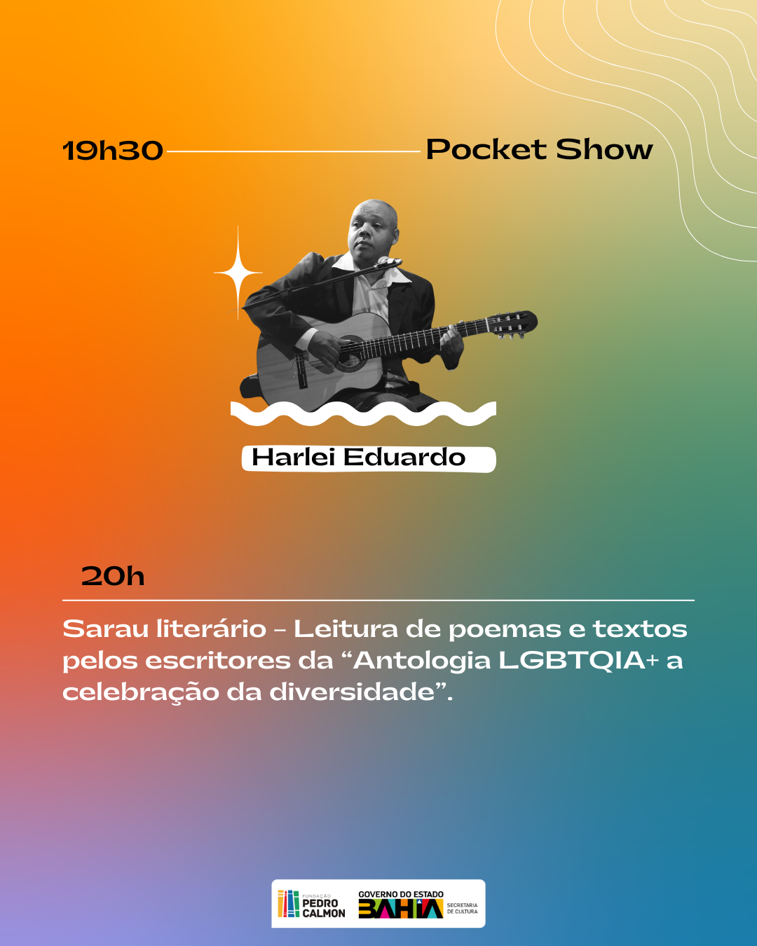O Maio da Diversidade na BCEB encerra com o Sarau literário – Leitura de poemas e textos pelos escritores da “Antologia LGBTQIA+, a celebração da diversidade e o Pocket Show com Harlei Eduardo.