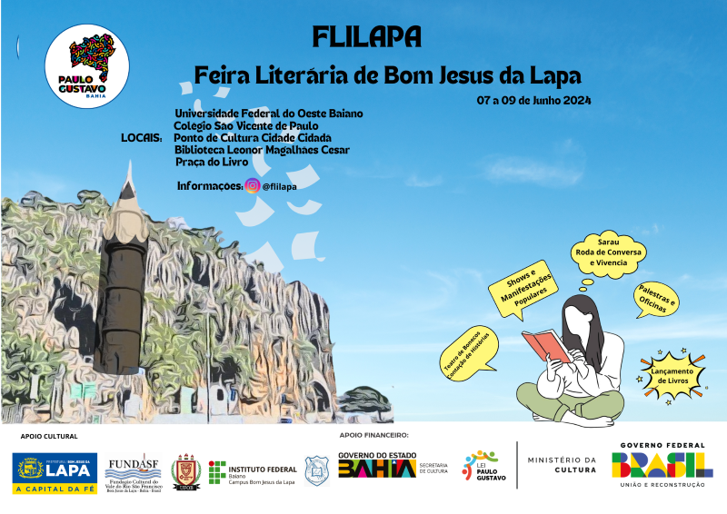 A I Feira Literária de Bom Jesus da Lapa (FLILAPA) será realizada nos dias 07, 08 e 09 de junho e terá uma extensa programação, onde contará com uma homenagem ao Escritor Geraldo Bastos.