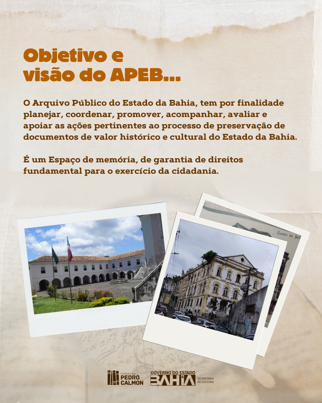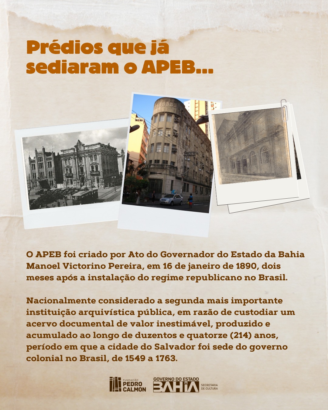 Dia Internacional dos Arquivos (9 de junho) é uma data para reconhecer a importância dos arquivos em preservar a história, o conhecimento de nossa sociedade, a  memória coletiva,  e o seu  papel crucial na transparência e na prestação de contas. Uma dessas instituições é o Arquivo Público do Estado da Bahia (APEB), unidade da Fundação Pedro Calmon (FPC/SecultBA), criada em 16 de janeiro de 1890.