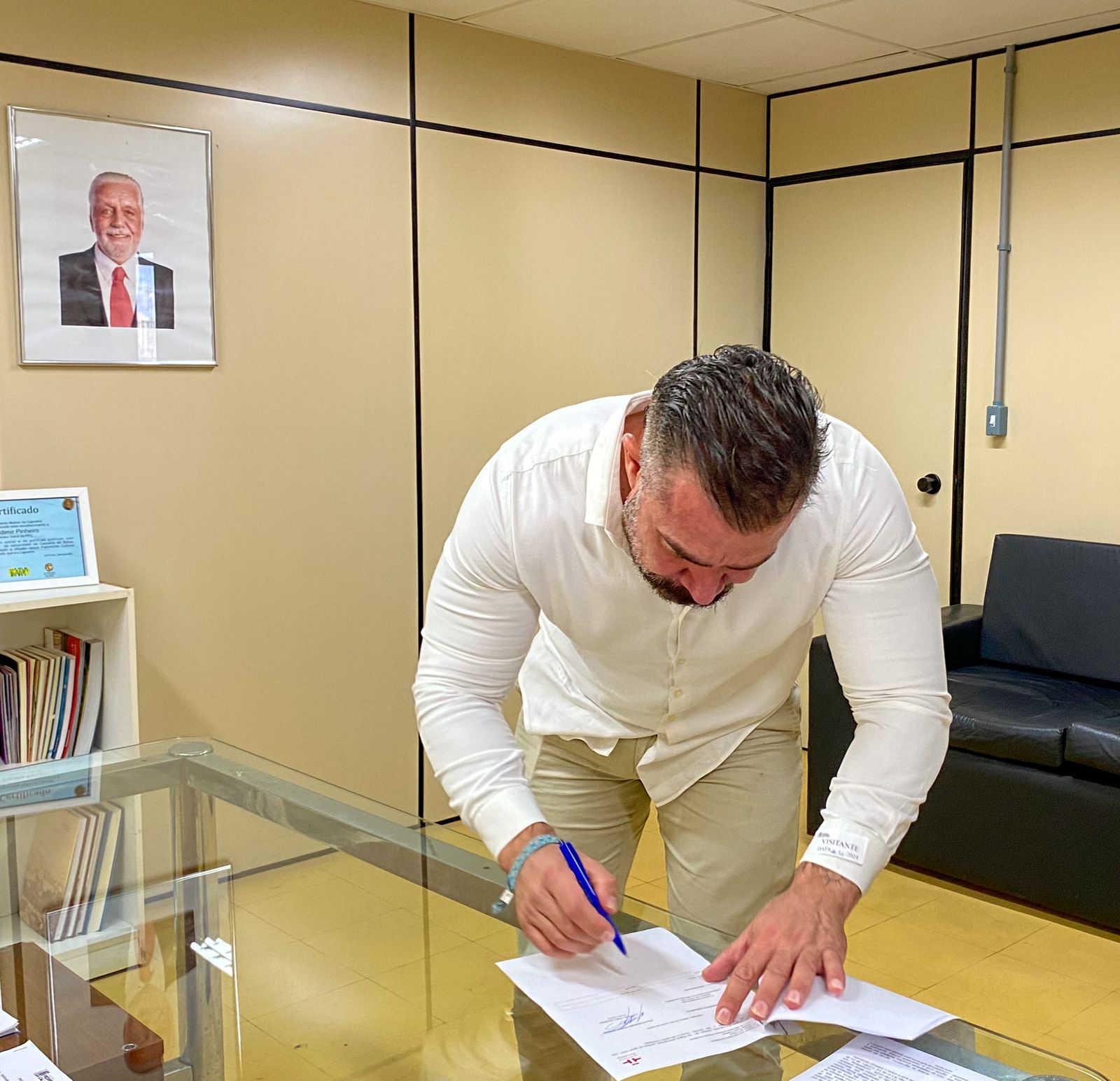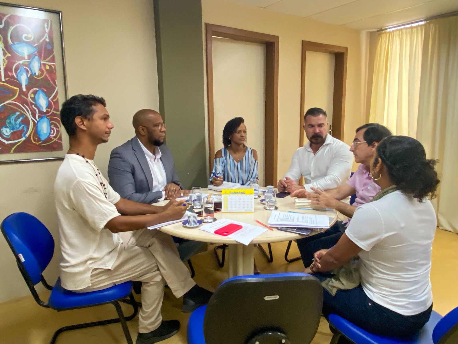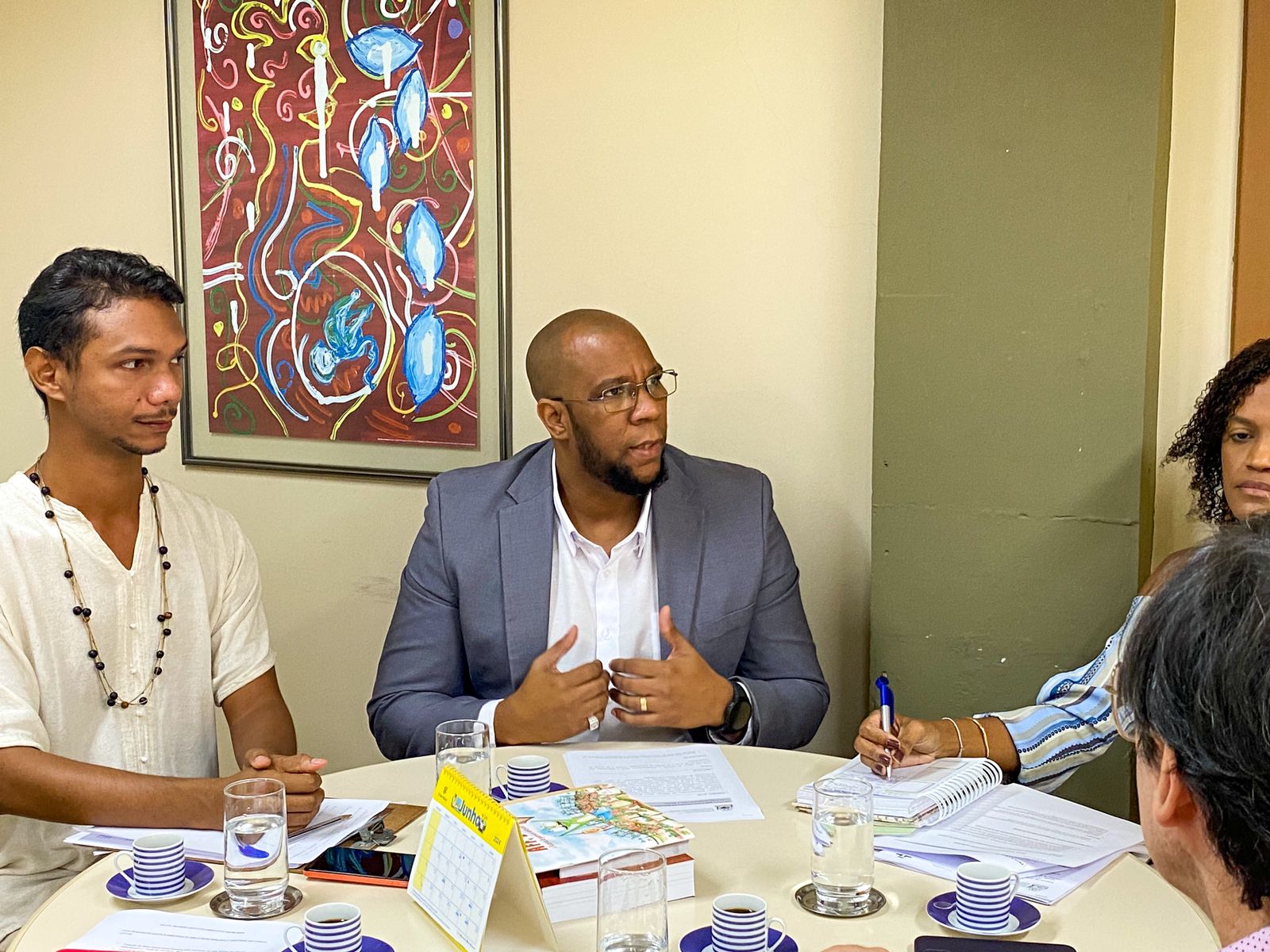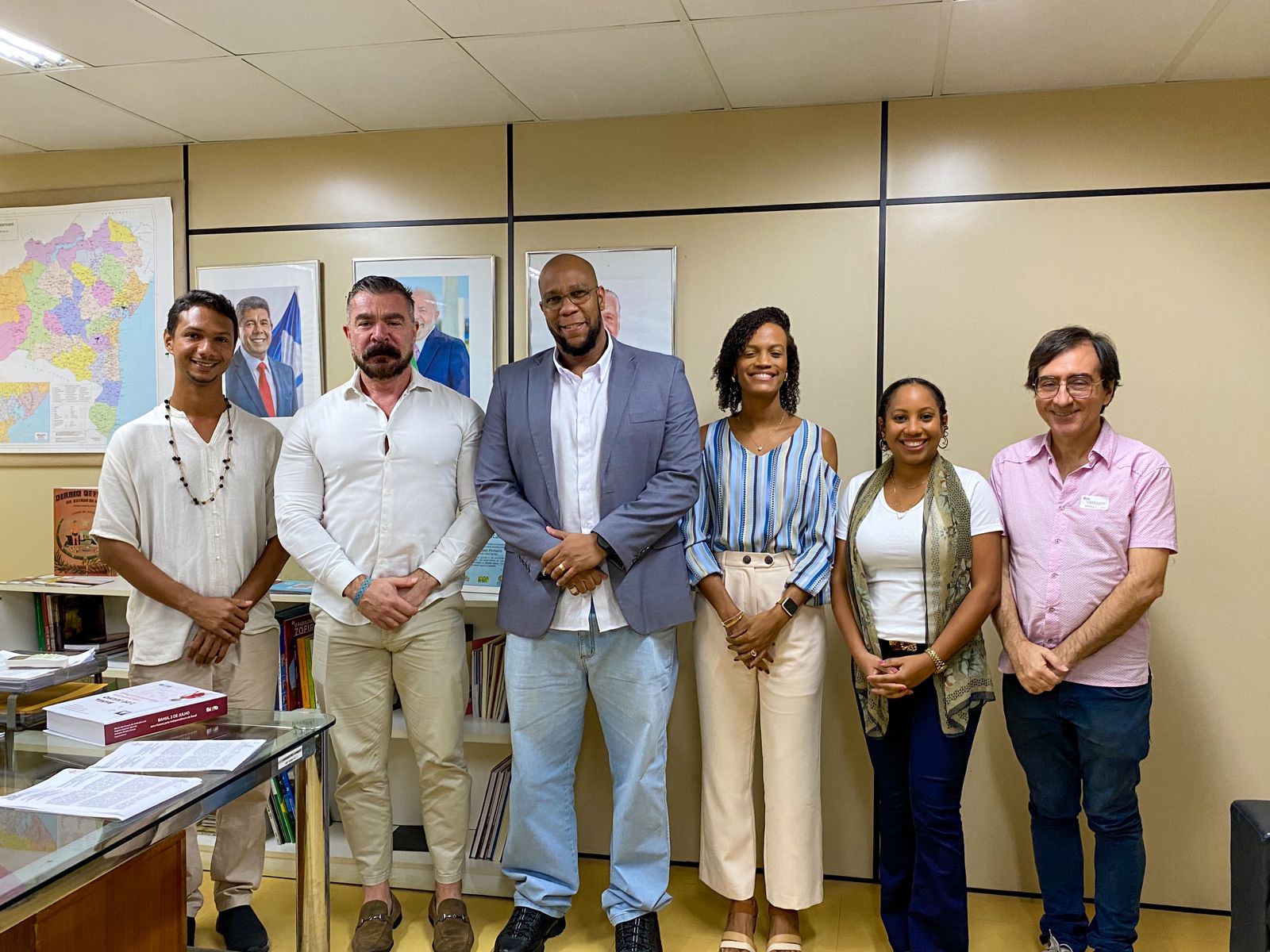 Estiveram presentes no ato, Daniel Gallego Arcas, Diretor do Instituto Cervantes, Carlos Pachoa, Bibliotecário do Instituo, além do Chefe de Gabinete da FPC, Caruso Costa, a Diretora de Bibliotecas, Tamires Conceição, a Gerente do Sistema Estadual de Bibliotecas, Ingrid Paixão e equipe técnica.