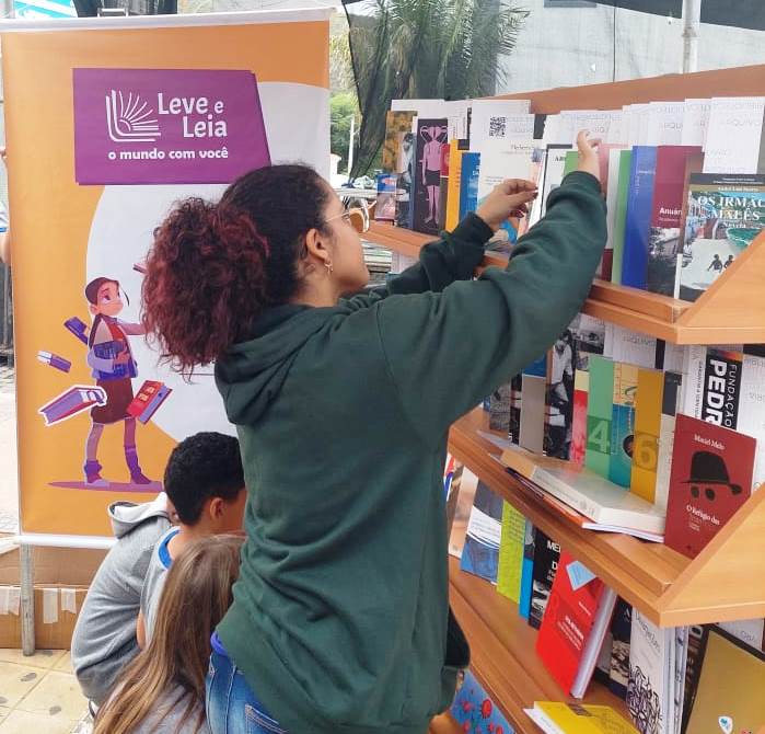 LEVE E LEIA “Leve e Leia” é um projeto que tem por objetivo a democratização do acesso ao livro e a promoção da leitura como prática social, incentivando e estimulando o compartilhamento dos livros e o debate crítico sobre a obra. A dinâmica consiste na aplicação de “Quiz Literário”, acerca da literatura brasileira junto aos estudantes que participam do evento literário, que ao acertarem as perguntas são premiados com livros.