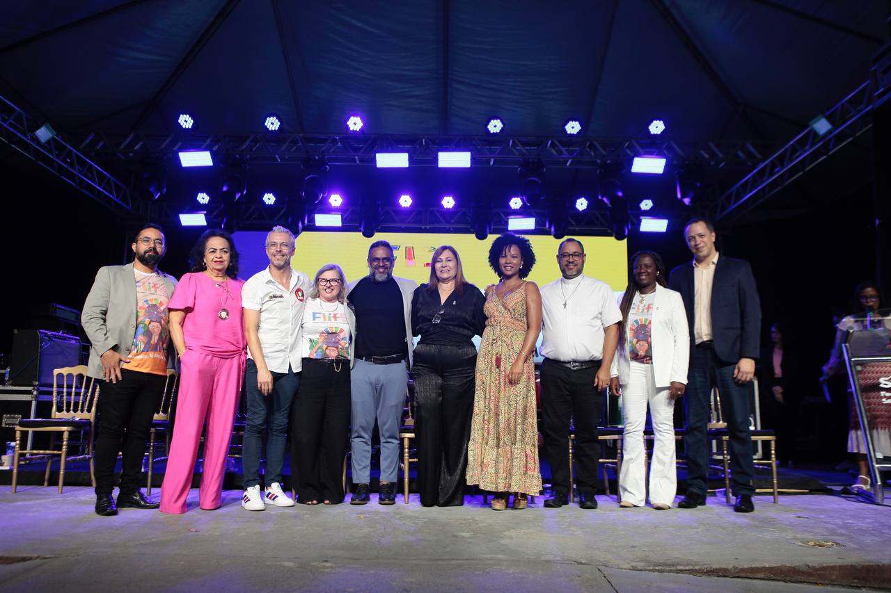 A literatura e o samba de roda foram a métrica da abertura da 17ª edição do Festival Literário e Cultural de Feira de Santana (Flifs), nesta terça-feira (27), na Praça Padre Ovídio, no Centro da cidade. O governador Jerônimo Rodrigues participou da abertura do evento, acompanhado por Bruno Monteiro, titular da cultura, e de secretários de estado, prestigiando os estandes de livro e cordel e o show da banda Quixabeira da Matinha — grupo de samba de roda de Feira de Santana.