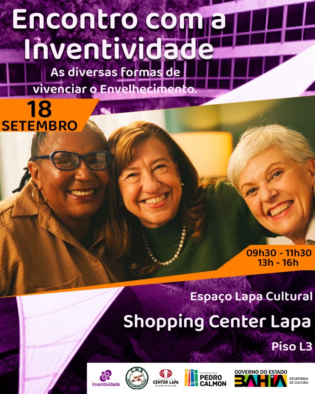 O encontro tem o objetivo de promover reflexões sobre os diversos e ricos modos de envelhecer, com uma ciranda de Conversa com o tema "As diversas formas de vivenciar o envelhecimento". As inventivas, Ana Claudia Freitas, Jane Carvalho e Maria Isabel Vitória de Carvalho, mediarão este momento e garantem que será um rico bate-papo.