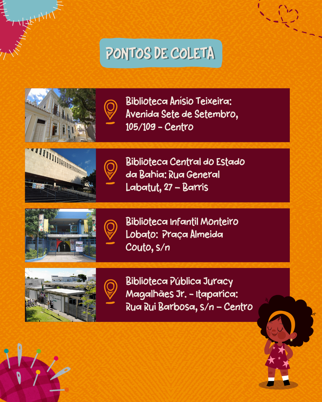 Para ser um colaborador, qualquer pessoa pode doar uma boneca preta nos pontos de arrecadação que são: