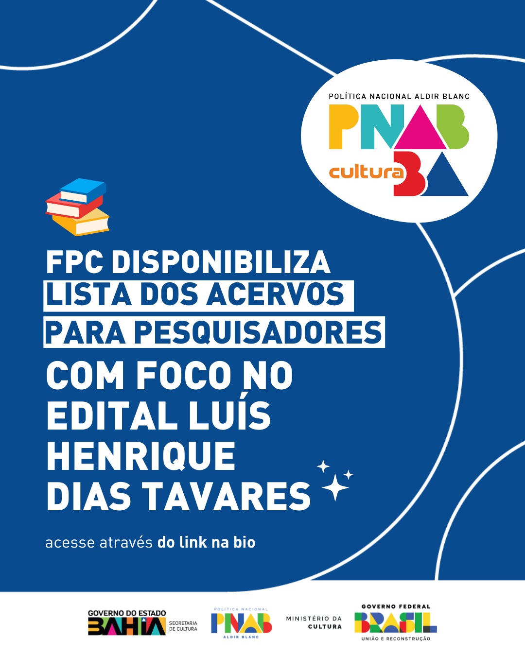 A Fundação Pedro Calmon (FPC), unidade vinculada à Secretaria de Cultura, será responsável pela realização do Edital Luís Henrique Dias Tavares. Com previsão de convocação de 20 projetos, o valor destinado para este edital é de R$ 1.200.000,00. O edital visa à concessão de bolsas para graduados em Arquivologia para desenvolverem projetos de pesquisa no Arquivo Público do Estado da Bahia; e concessão de bolsas para graduados em História, Ciências Sociais e/ou Arquivologia, para desenvolvimento de projetos de pesquisa no Centro de Memória da Bahia.