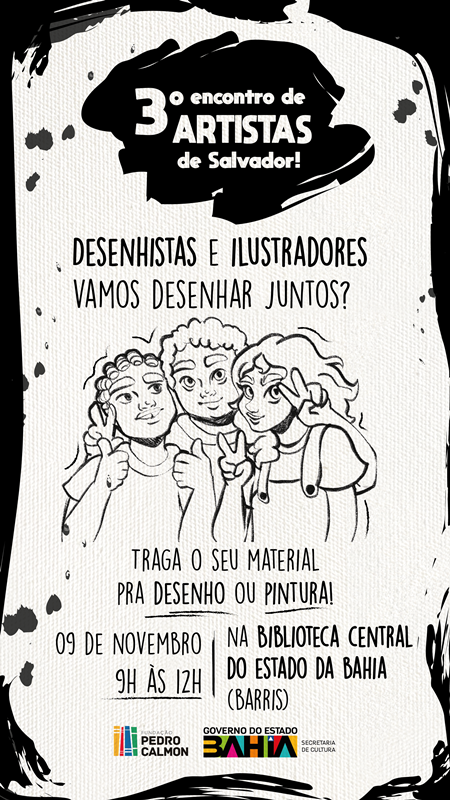 No dia 09 de novembro, das 9h às 12h, a Biblioteca Central do Estado da Bahia, equipamento da Fundação Pedro Calmon, receberá o 3° Encontro de Artistas de Salvador. Iniciado pelo Ilustra Salvador – uma comunidade no Discord para ilustradores locais, profissionais e amadores – o evento é uma oportunidade incrível para desenhar em conjunto, trocar ideias e expandir a rede de artistas da cidade.