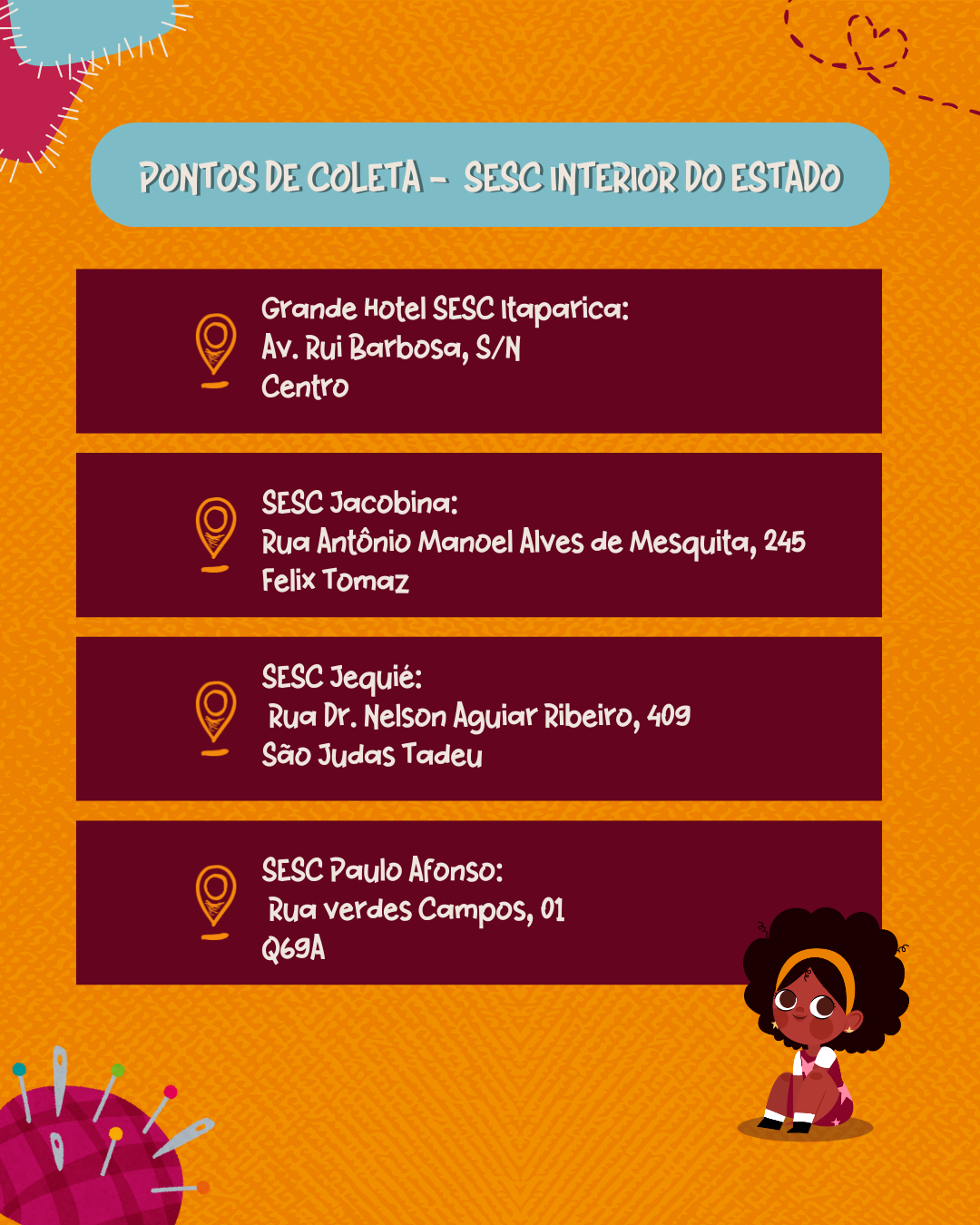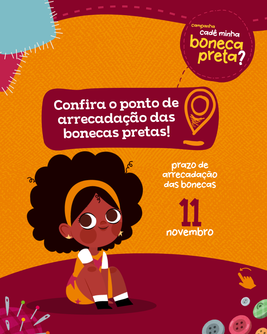 Além de promover a doação das bonecas, a campanha estimula a união da comunidade local em torno da valorização da representatividade, fortalecendo laços sociais e criando um ambiente de apoio. A arrecadação dos brinquedos será realizada até o dia 11 de novembro, com um evento de entrega especial no dia 12 de novembro, que contará com uma programação cultural e educativa.