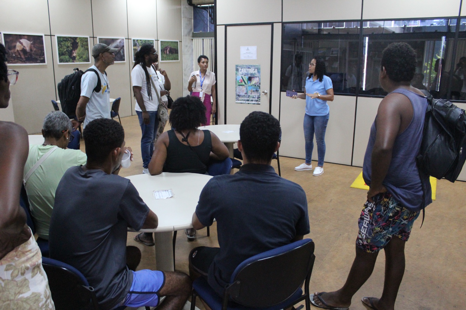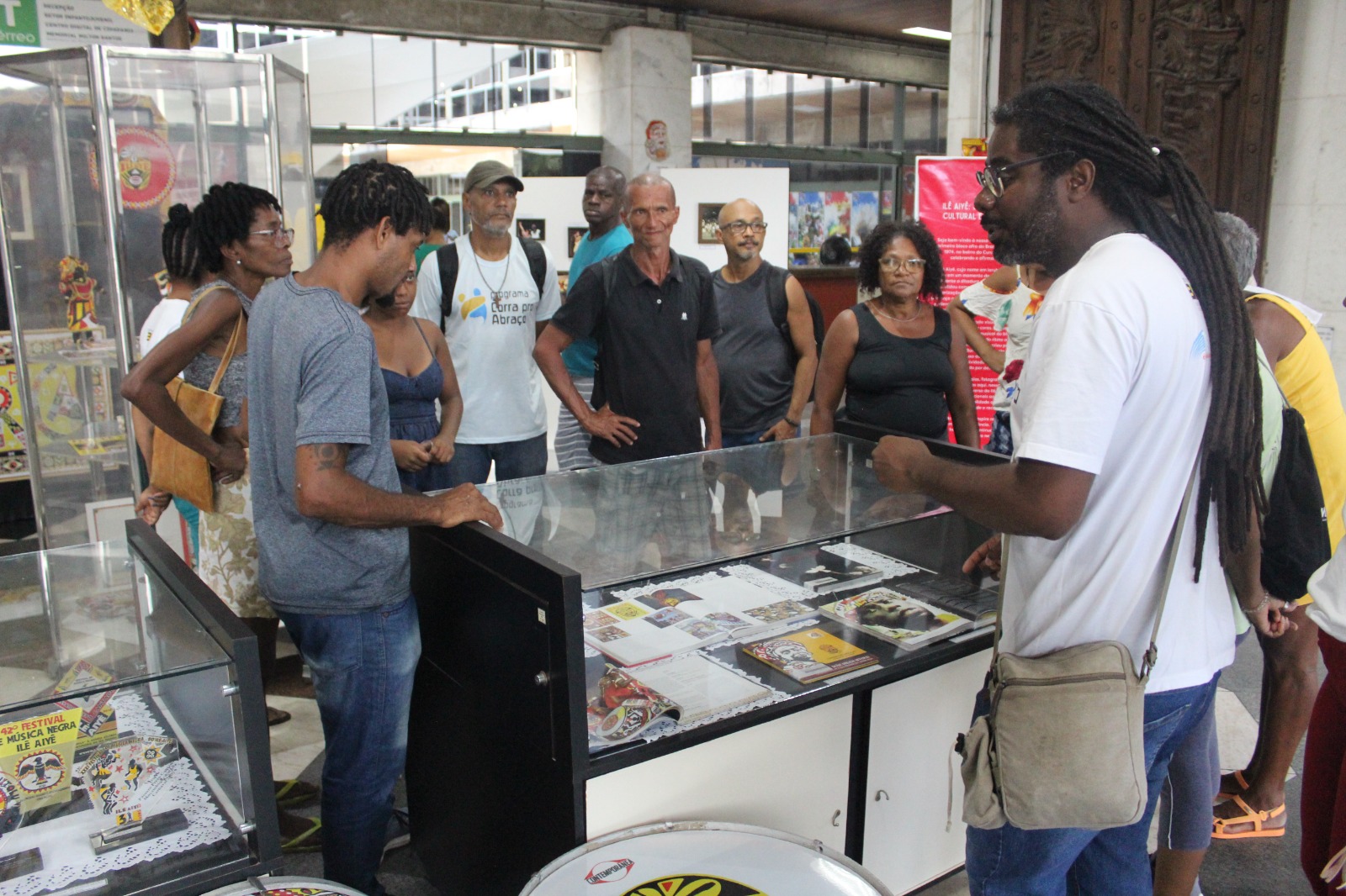 Beneficiários do Corra pro Abraço, programa vinculado à Secretaria de Assistência e Desenvolvimento Social (SEADES), visitaram nesta segunda-feira (02) à exposição “50 anos do Bloco Ilê Aiyê”, na Biblioteca Central do Estado da Bahia, equipamento da Fundação Pedro Calmon.