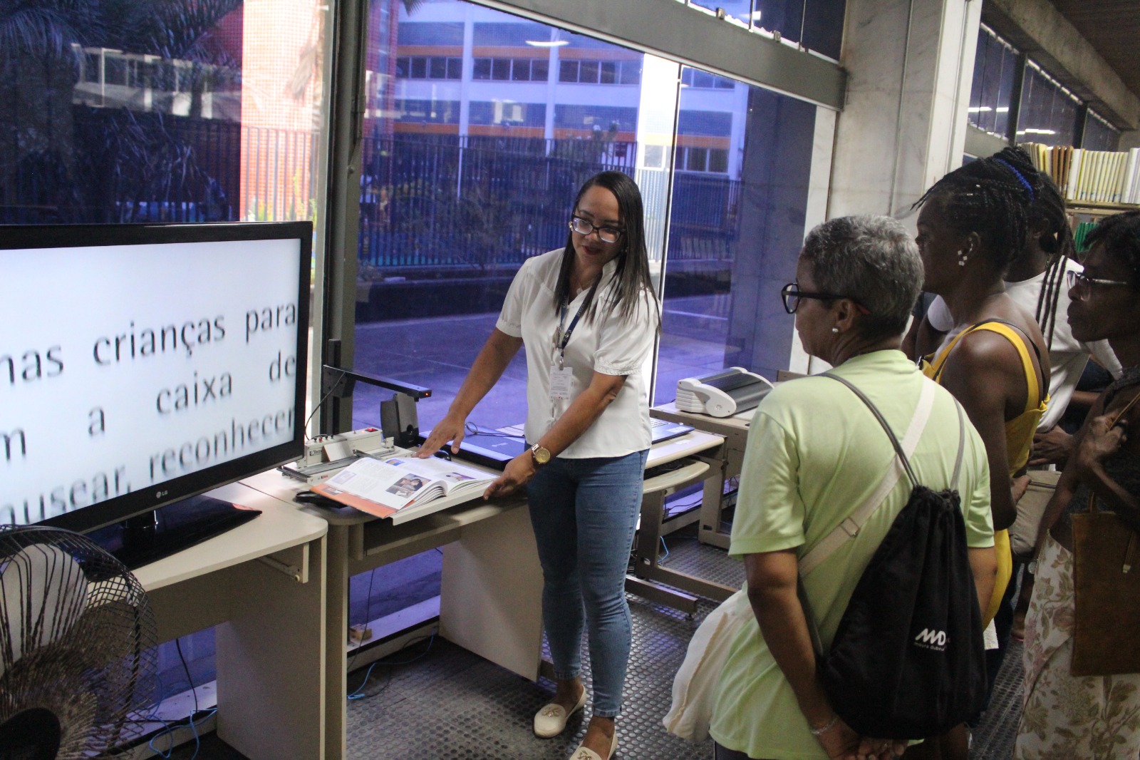 O itinerário contou também com uma visita guiada pelos espaços da Biblioteca Central e pelos acervos da Fundação Pedro Calmon, a partir da parceria com o Coordenador dos Acervos Virtuais Baianos, Consuelo Pondé, e equipes da biblioteca e fundação.