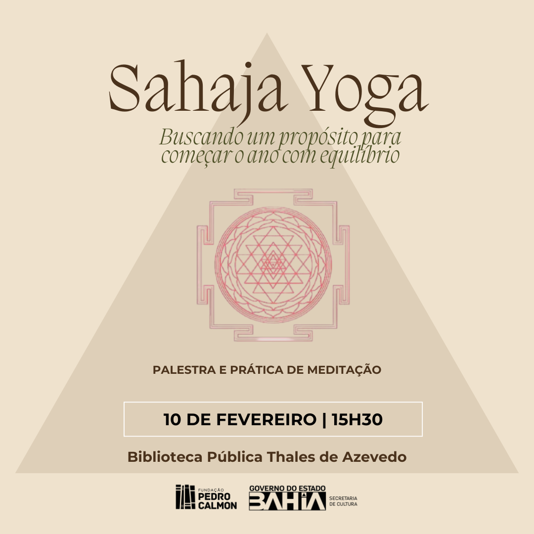 No dia 10 de fevereiro (segunda-feira), às 15h30, a Sahaja Yoga, em parceria com a Fundação Pedro Calmon, unidade vinculada à Secretaria de Cultura da Bahia (FPC/SecultBA), realizará uma palestra e aula prática de yoga na Biblioteca Pública Thales de Azevedo (BPTA), localizada no bairro Costa Azul, em Salvador.
