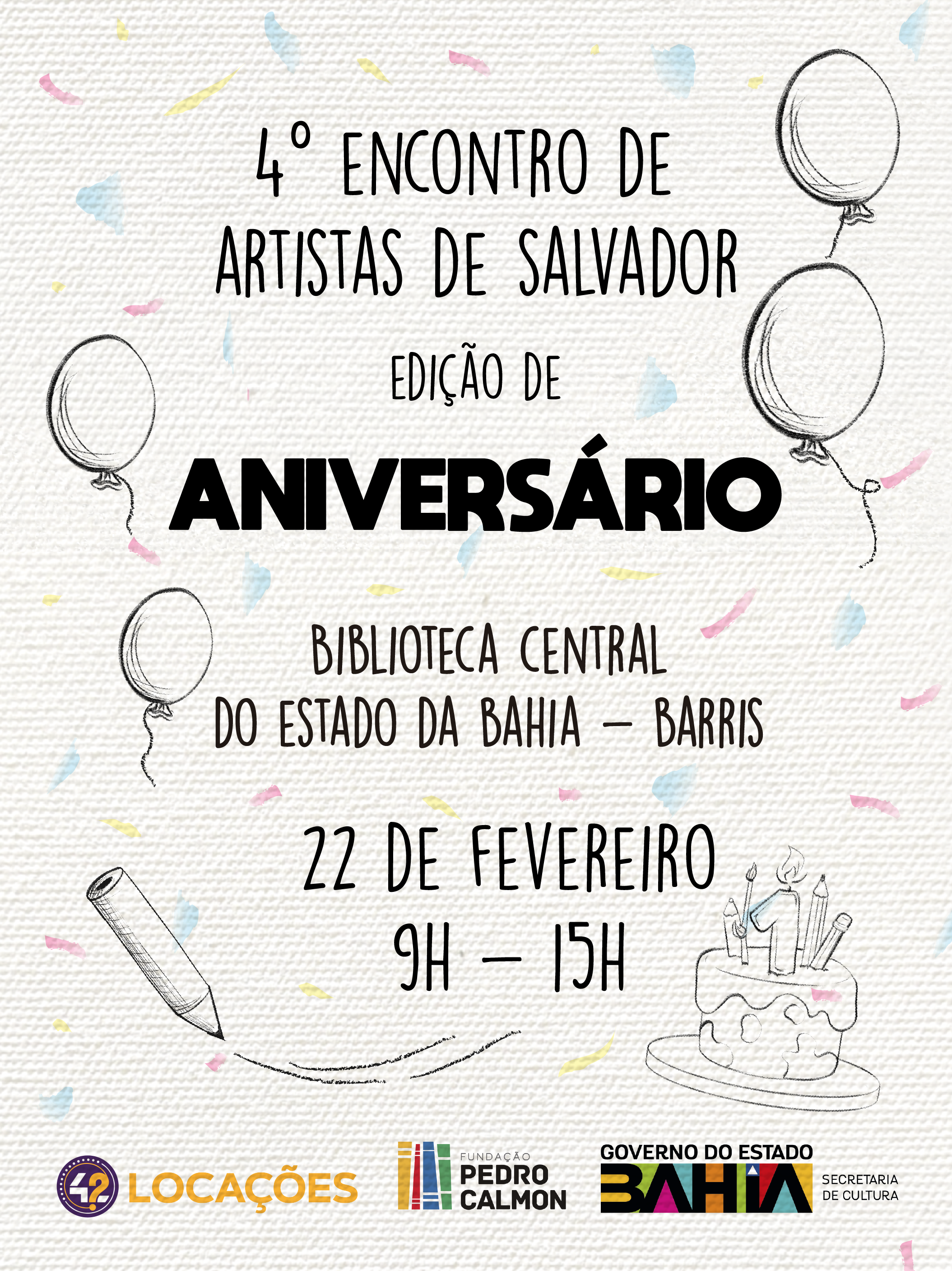 Chega a sua 4° edição o Encontro de Artistas promovido pelo grupo Ilustra Salvador. Pelo segundo ano consecutivo, o evento acontece na Biblioteca Central do Estado da Bahia, equipamento da Fundação Pedro Calmon (FPC/SecultBa). O evento aberto ao público acontece neste sábado (22), das 09 às 15h.