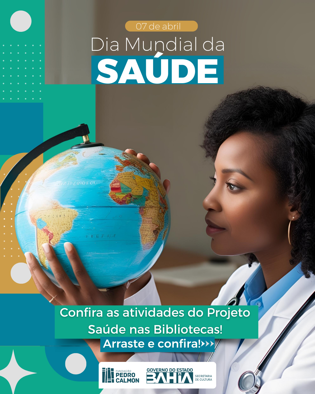 Celebrado no dia 07 de abril, data que foi criada segundo a fundação da Organização Mundial da Saúde (OMS) no ano de 1948, o Dia Mundial da Saúde (07) é uma data para refletir e incentivar hábitos positivos ao nosso bem-estar e qualidade de vida. A Fundação Pedro Calmon (FPC), vinculada à Secretaria de Cultura da Bahia (SecultBa), traz o projeto “Saúde nas Bibliotecas”, programação de eventos como palestras e rodas de conversas que promovem conhecimento e conscientização sobre cuidados da saúde ao público.