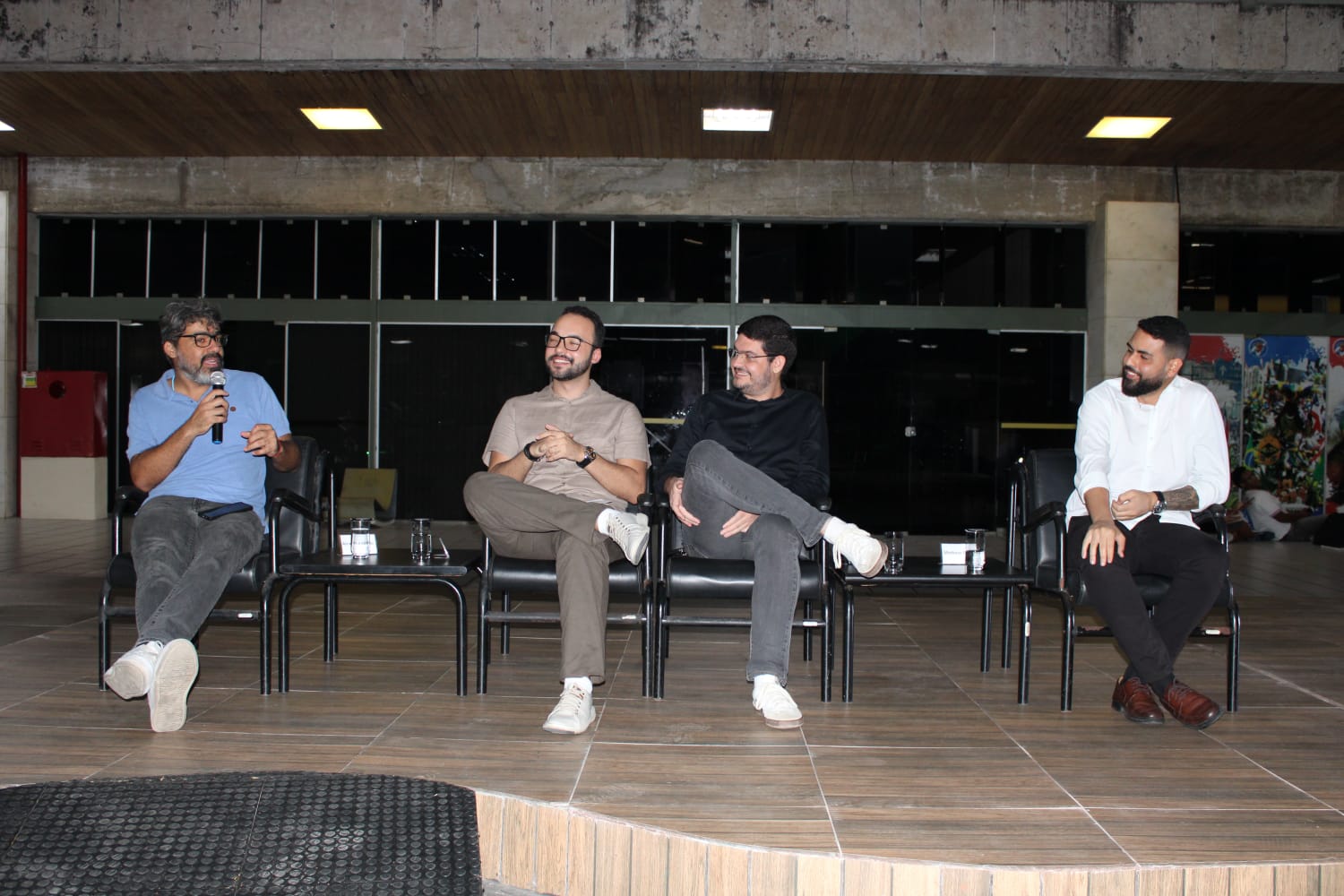 A primeira mesa de conversam reuniu nomes como o presidente da Associação Bahiana de Imprensa, Ernesto Marques, o 1º vice-presidente da ABI, Luis Guilherme Pontes Tavares, e os jornalistas Mariana Alcântara, James Martins e Fernando Conceição para uma conversa sobre múltiplas questões sem respostas fáceis do jornalismo na contemporaneidade, incluindo os limites da liberdade de expressão e as amarras econômicas da imprensa.