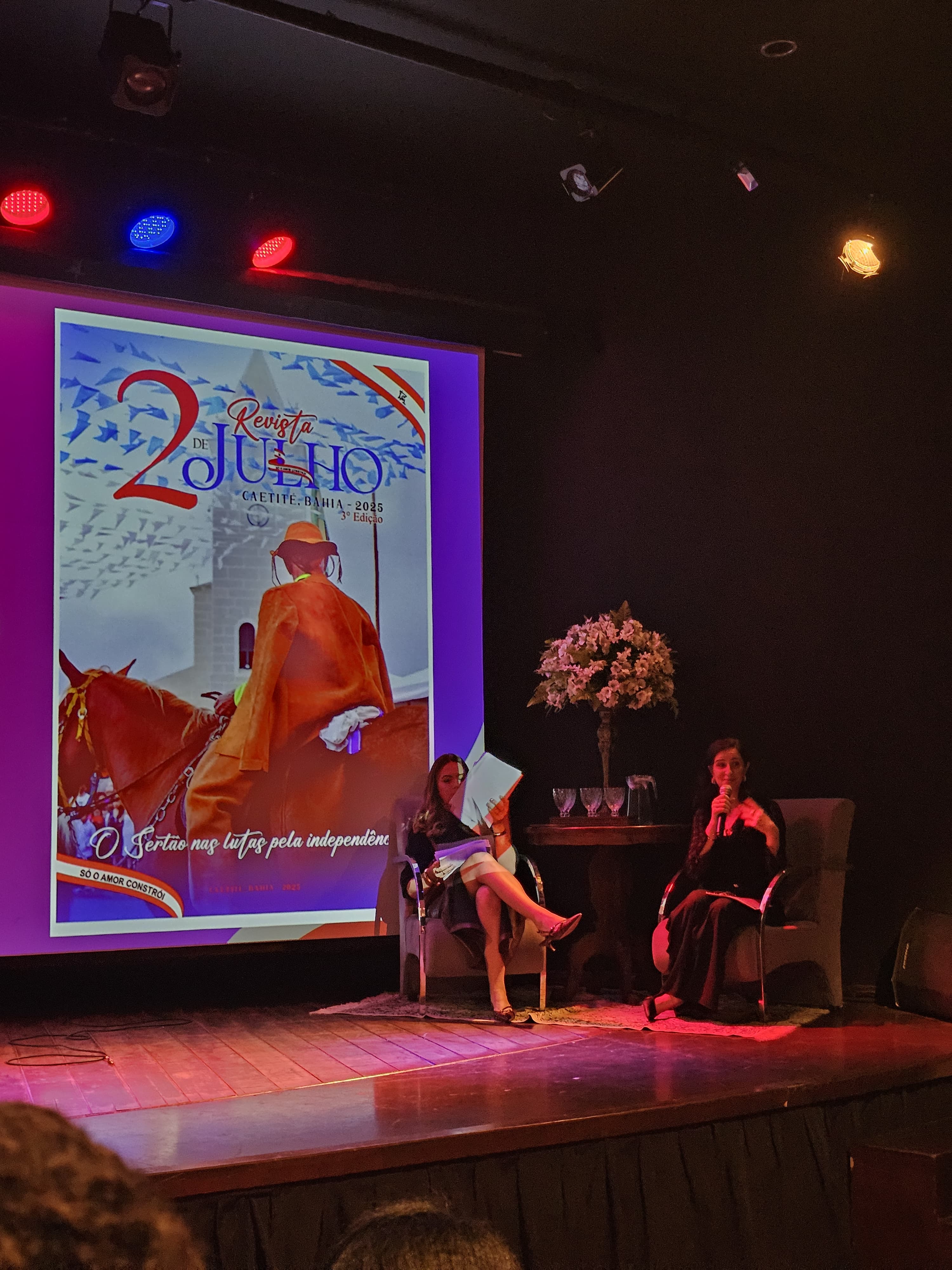 Já a noite, com apresentação das professoras Maria José Couto Gonçalves e Fernanda de Oliveira Matos, aconteceu no Auditório do Espaço Casa Anísio Teixeira, o lançamento da terceira edição da Revista 2 de Julho, uma publicação que resgata narrativas e documentos sobre a luta pela independência na Bahia, tendo a participação da Fundação Pedro Calmon com um dos artigos da revista, no qual destaca as ações da Rota da Independência ao longo dos anos em Caetité.