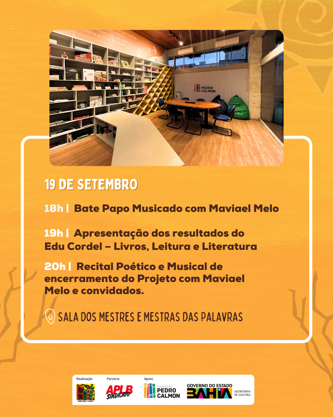 20h00 – Recital Poético e Musical de encerramento do Projeto com Maviael Melo e convidados.
