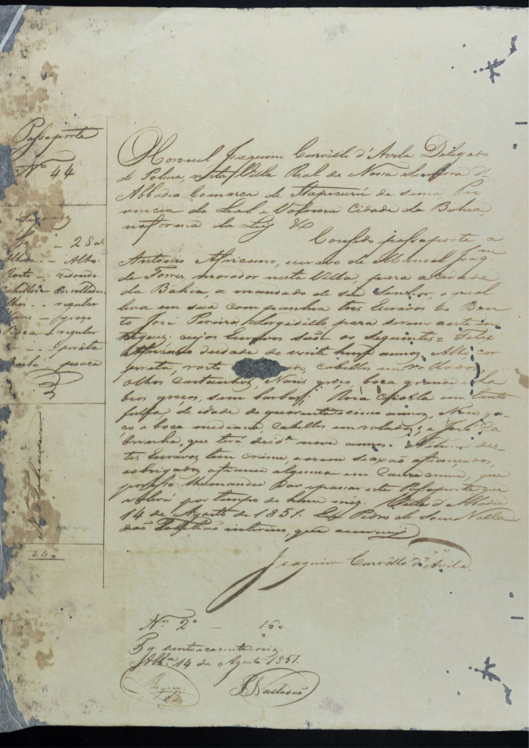 A segunda proposta refere-se novamente ao conjunto de Passaportes de Pessoas Escravizadas e Libertadas, acervo singular que preserva registros identitários e de circulação compulsória, essenciais para a historiografia da escravidão, da mobilidade forçada e da diáspora africana no Brasil.